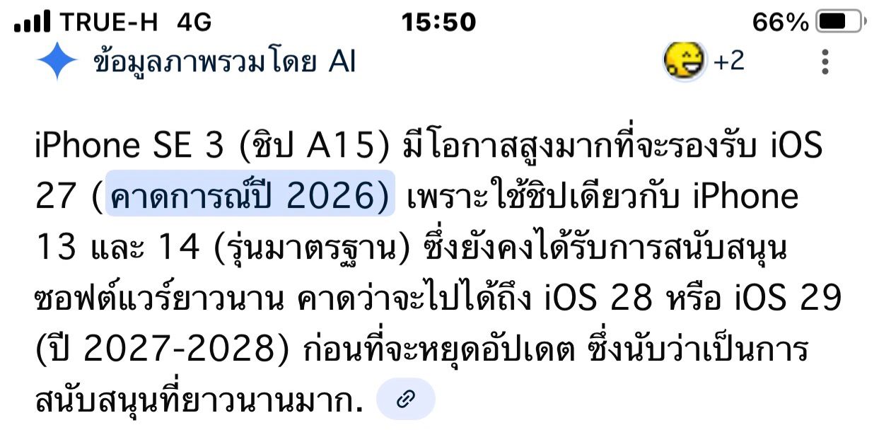 ปัจจุบันเห็นว่าสามารถไปต่อใน ios 26 ได้ ทีนี้คาดการณ์คิดว่า จะได้ไปต่อใน ios 27-28 โน่นเลยไหมครับผม ประมาณว่าอยากใช้ไห้คุ้มๆแหละครับผม ผิดพลาดขออภัย ขอบคุณมากครับ