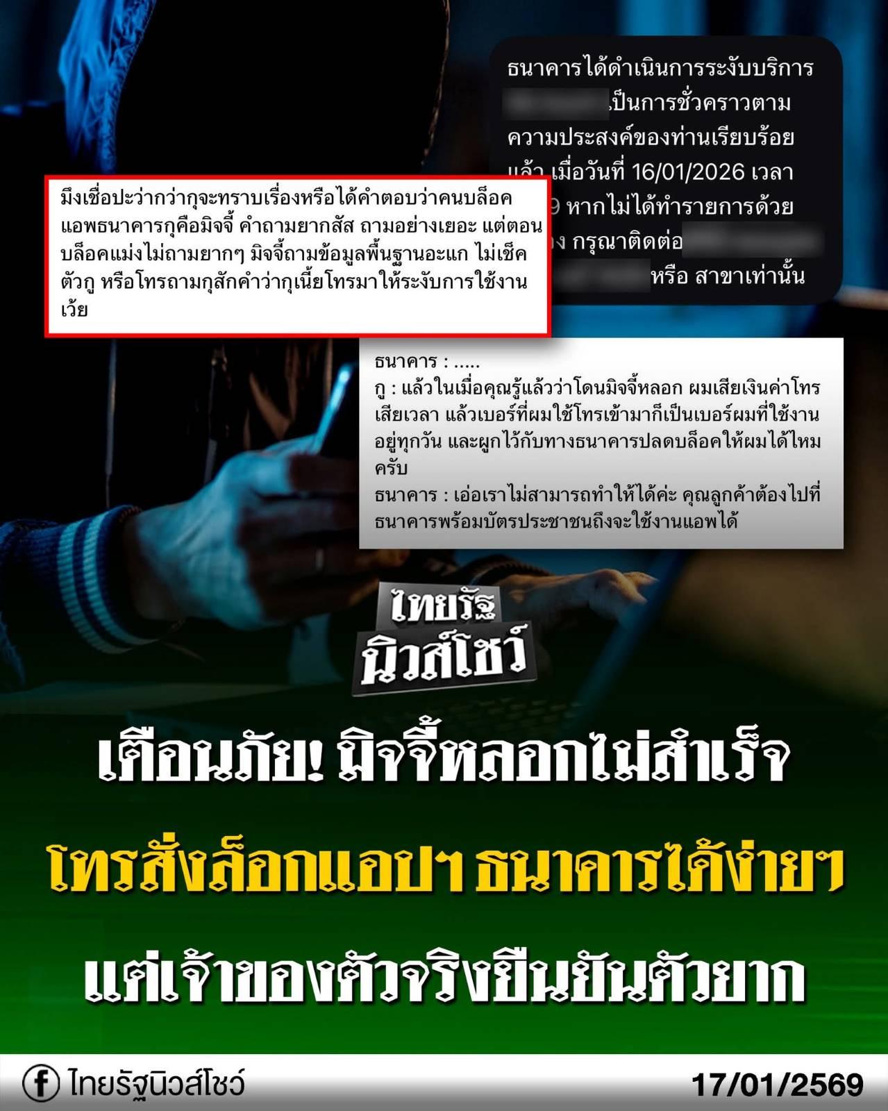 ⚠️ เตือนภัย! มิจฉาชีพหลอกเหยื่อไม่สำเร็จ สวมรอยแจ้ง "มือถือหาย" สั่งแบงก์อายัดแอปฯ ธนาคาร ทำลูกค้าตัวจริงวุ่น