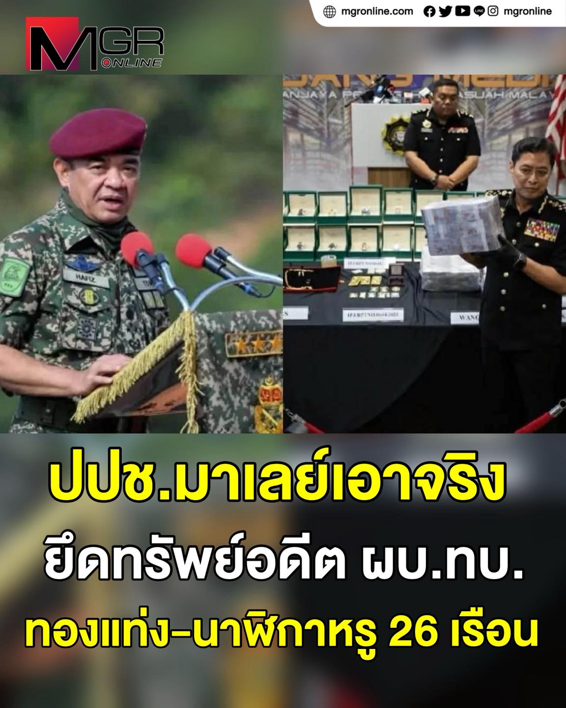 ฉาวสนั่นมาเลเซีย ปปช.มาเลย์ (MACC) บุกยึดทรัพย์ขบวนการทุจริตจัดซื้อจัดจ้างกว่า 88 ล้านบาท พร้อมอายัดบัญชีอีก 250 ล้าน พัวพันอดีต ผบ.ทบ. และภรรยา หลังพบหลักฐานเด็ดทั้งทองคำแท่งและนาฬิกาหรูซุกบ้านพัก เร่งขยายผลผู้เกี่ยวข้องแล้ว 23 ราย