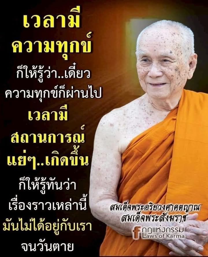เวลามีความทุกข์ก็ให้รู้ว่าเดี๋ยวมันก็ผ่านไป เวลามีสถานการณ์แย่ๆเกิดขึ้น ก็ให้รู้เลยว่ามันจะไม่อยู่กับเราไปตลอด
