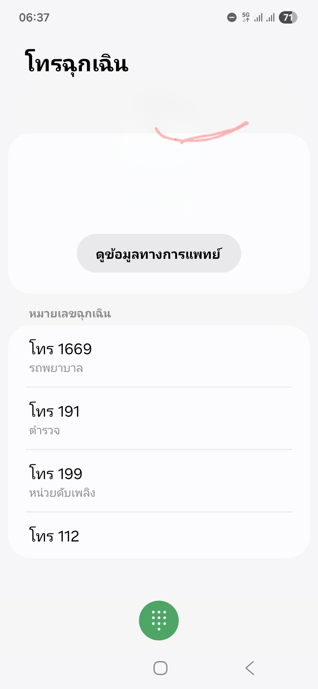 จากนั้นแค่เอานิ้วไปจิ้มที่หมายเลขฉุกเฉินที่ให้เลือก เครื่องก็โทรออกแล้ว