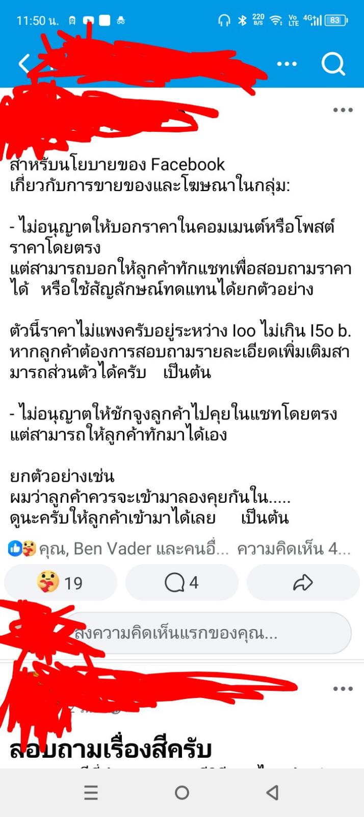 เราได้อ่านดูแล้ว ก็ได้แต่คิดแล้วก็สงสัย มันใช่เหรอ..? กลุ่มรับทำชุดหรือพร็อพ และรวมถึงกลุ่มซื้อขายสิ่งของต่าง ๆ ไม่ให้เม้นต์บอกราคาหรือโพสต์แจ้งราคาโดยตรง แต่บอกให้ใช้สัญลักษณ์ประหลาด ๆ ทดแทนแบบนี้ มันมีโอกาสโดนหลอกมากกว่าเดิมอีกหรือเปล่า และทำแบบนี้ เอาจริง ๆ เลยนะ เราว่ามันดูไม่เป็นมืออาชีพเลย ไม่ให้เม้นต์บอกราคาหรือโพสต์แจ้งราคาโดยตรง แต่ให้ใช้สัญลักษณ์ประหลาด ๆ ทดแทนแบบนี้ มันดูเหมือนกับว่ากลุ่มจงใจพยายามที่จะหลบเลี่ยงอะไรบางอย่าง และมันแสดงให้เห็นถึงความไม่จริงใจระหว่างพ่อค้าแม่ค้ากับลูกค้าอีกด้วย อันนี้คือความรู้สึกส่วนตัวของเรานะ จริง ๆ เราเจอแบบนี้มาหลายกลุ่มแล้ว เวลาที่เขาจะโพสต์ขายของ ก็มักจะเขียนโพสต์แบบประหลาด ๆ เพื่อหลบเลี่ยง สมมติ