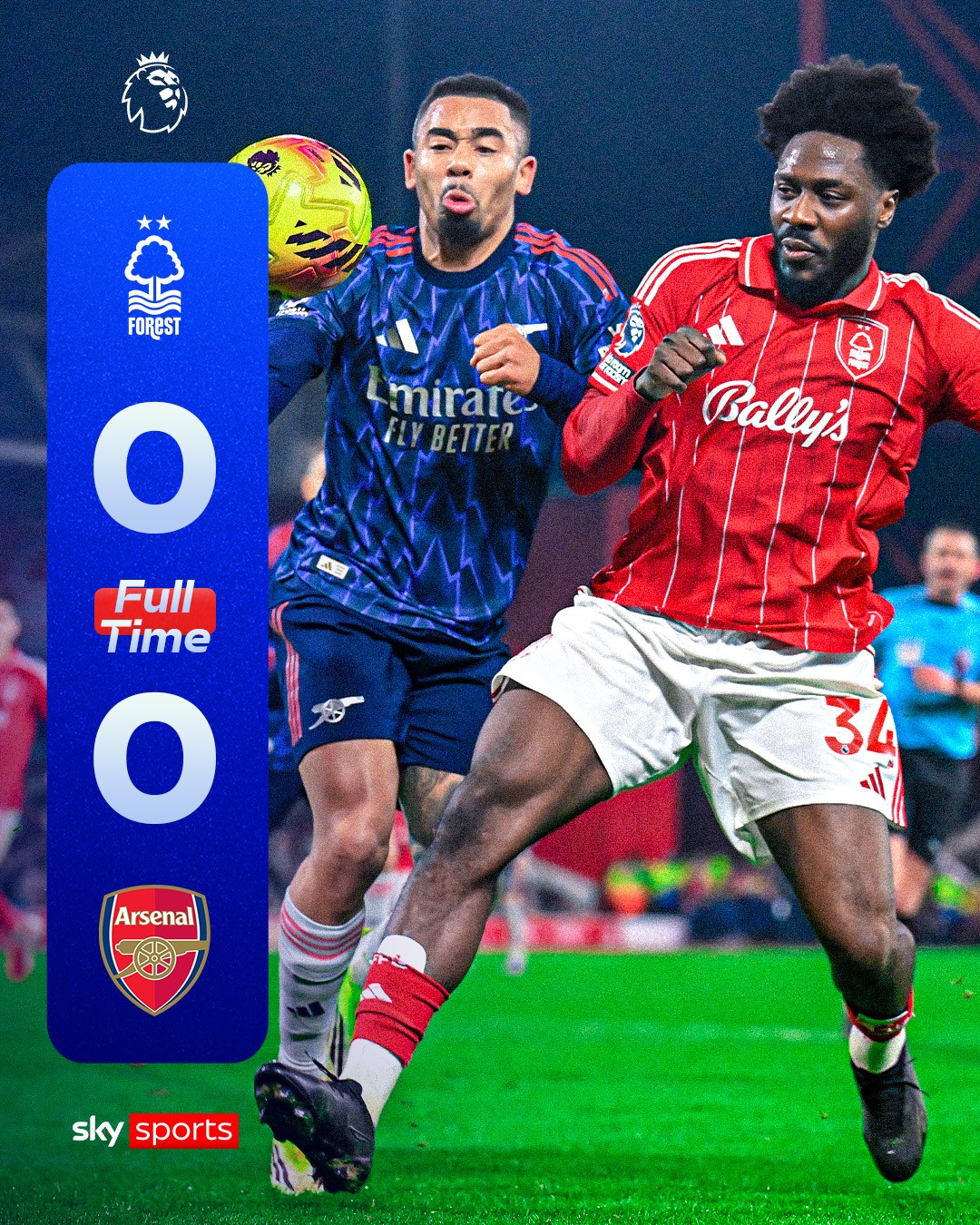 Arsenal เสมอ 0:0 ห่างจากที่ 2 7 แต้ม Forrest ห่างจาก Zone ตกชั้น 5 แต้ม