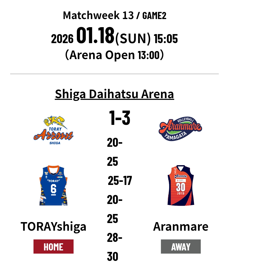 DENSO Airybees 3 - 0 Gunma Green Wings Top Score DENSO 7.Rosamaria 15 Pts 1 Blk 33.Minowa Sachi 14 Pts 2 Blk 10.Ishikura Saki 7 Pts 1 Blk 1 Ace 1.Yamashita Haruna 7 Pts 2 Blk Top Score Gunma 10.Olivia