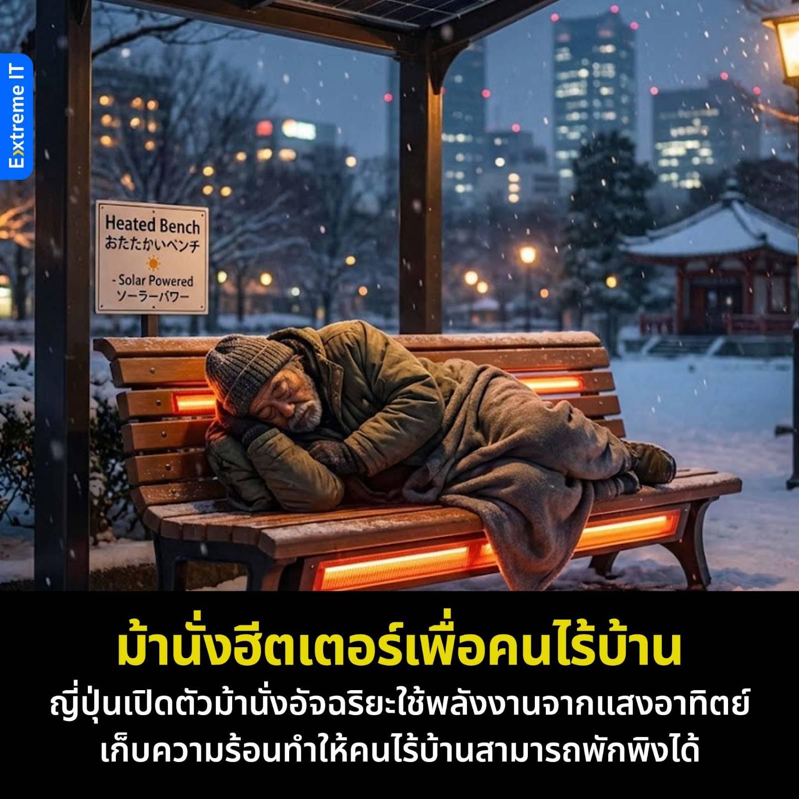 ❄️ญี่ปุ่นเปิดตัวม้านั่งฮีตเตอร์พลังงานแสงอาทิตย์เพื่อช่วยคนไร้บ้านสู้กับอากาศที่หนาวเย็น
