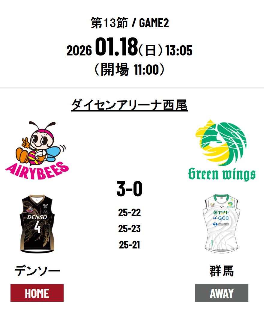 DENSO Airybees 3 - 0 Gunma Green Wings