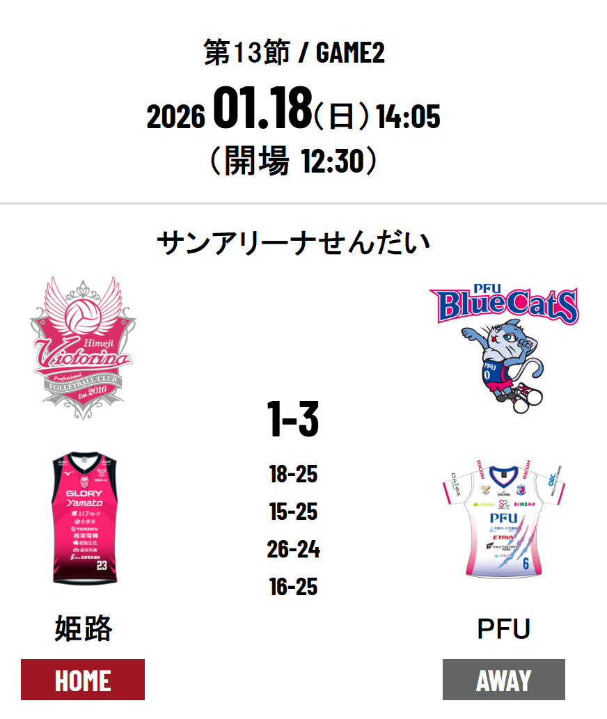 Victorina Himeji 1 - 3 PFU Bluecats Ishikawa Kahoku