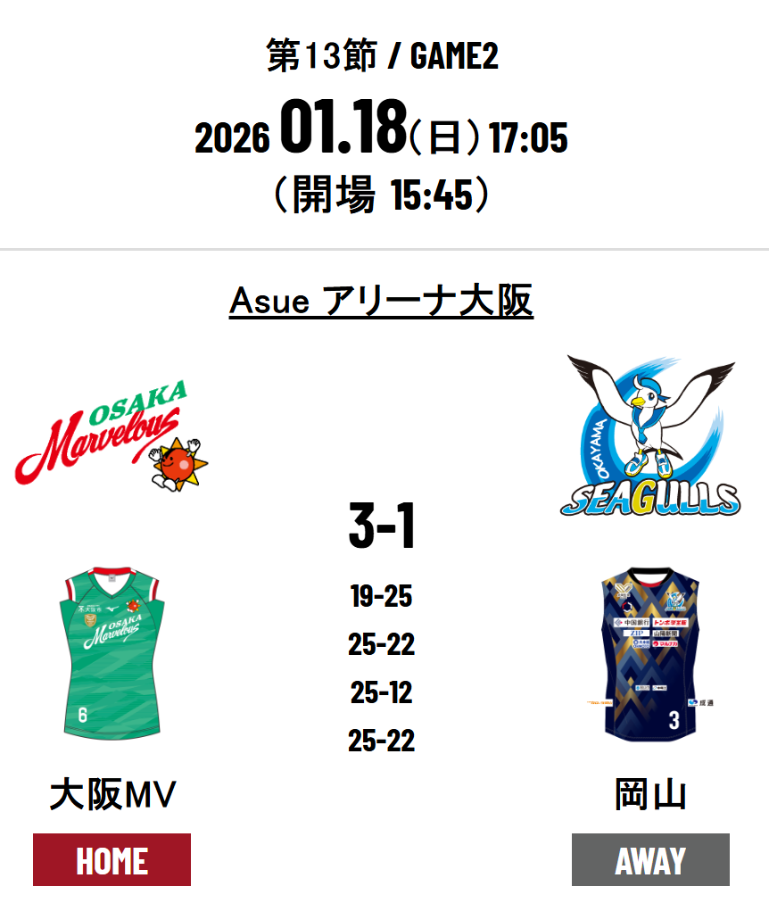 Osaka Marvelous 3 - 1 Okayama Seagulls