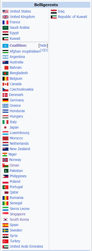 ถ้าอเมริกาบุกอิร่านคิดว่าจะมีประเทศไหนเข้าร่วมบ้างเหมือนกับที่เคยเกิดขึ้นในสงครามอ่าวที่มีพันธมิตรมากกว่า42ประเทศเข้าร่วมเเม้เเต่ประเทศเล็กๆอย่างสิงคโปร์ก็ยังเข้าร่วมด้วย