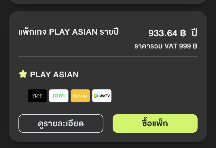 สมัครแพ็คเก็จ Play Asian 999 บาท ได้3 แอฟ 1ปี