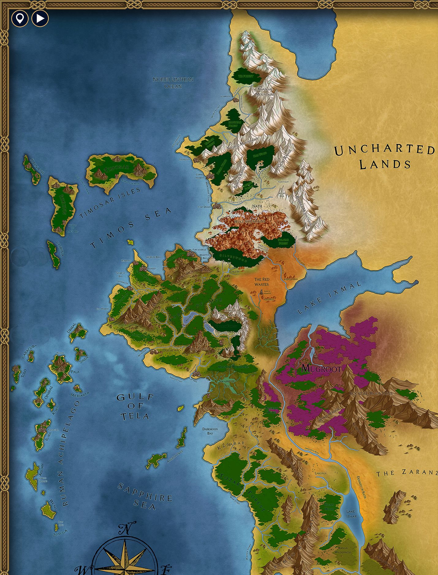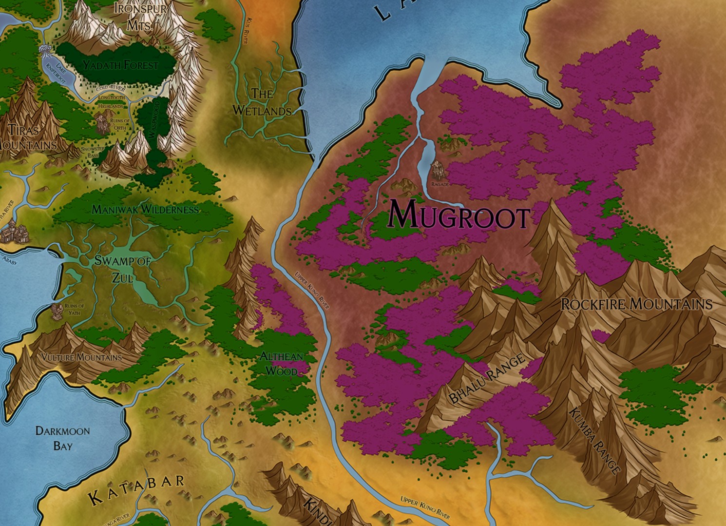 แผนที่ทวีป Kothia ทางตะวันตก (ส่วนทางตะวันออกนั้นยังไม่เคยมีการเข้าไปสำรวจ)