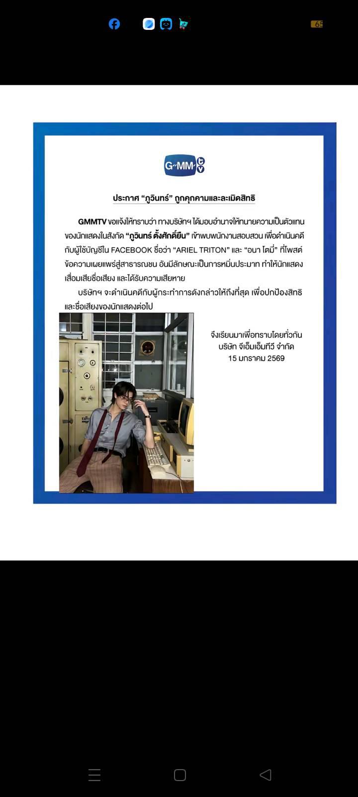 2 คนแรกครับ จิมมี่กับภูวินทร์ ถูกละเมิดสิทธิส่วนบุคคลไปแล้วจน Gmmtv มีแถลงการณ์ไปตามภาพนี้