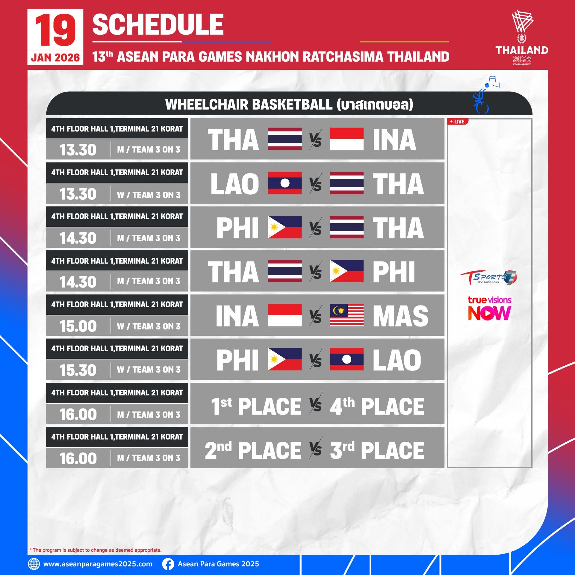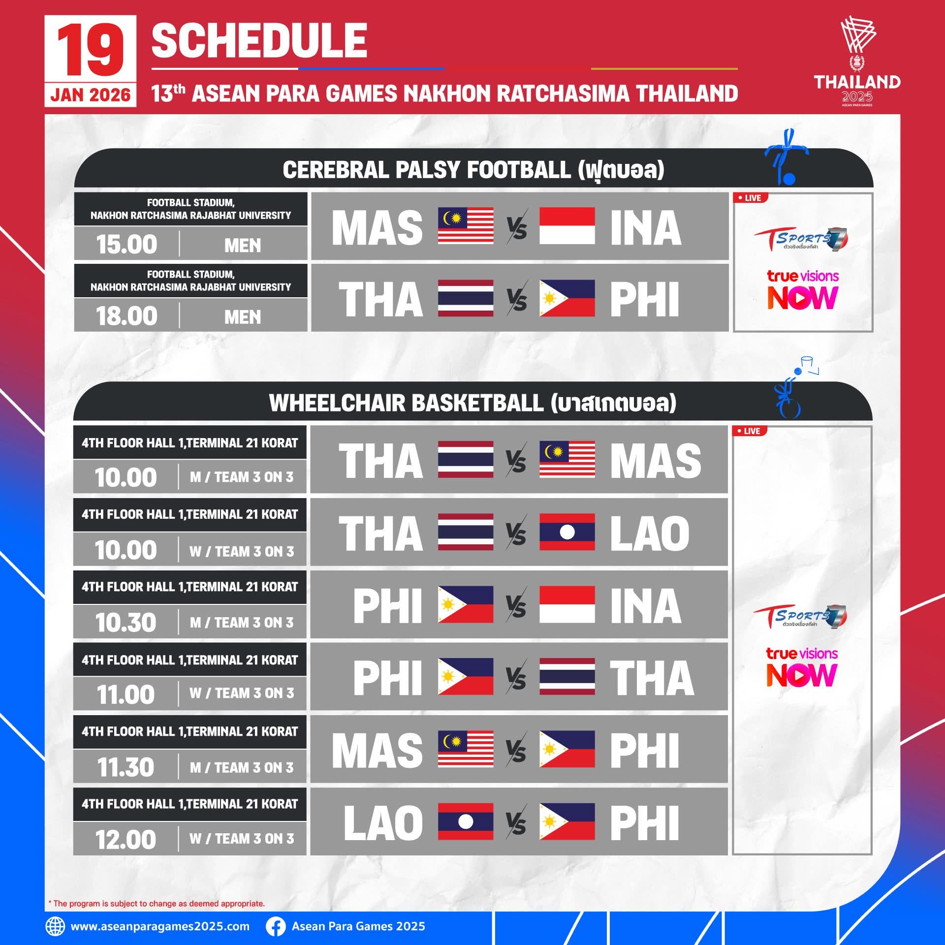 โปรแกรมอาเซียนพาราเกมส์ วันที่19 ม.ค 69