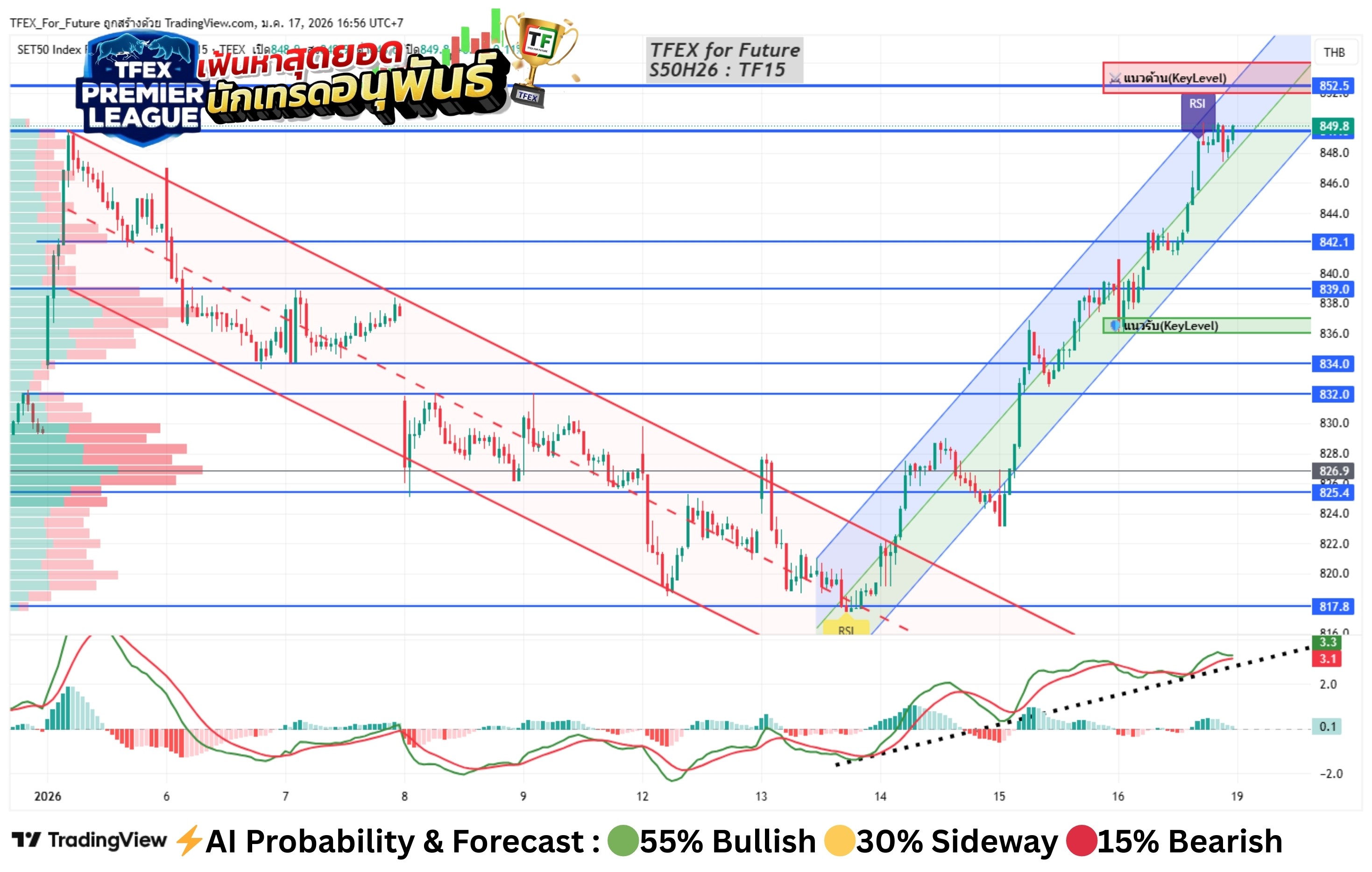 ⚔️แนวต้าน (Resistant) : 852-854 (จุดร่วม 3 Indicators)