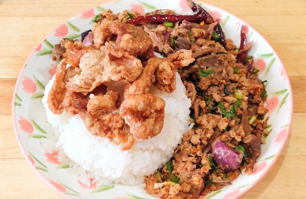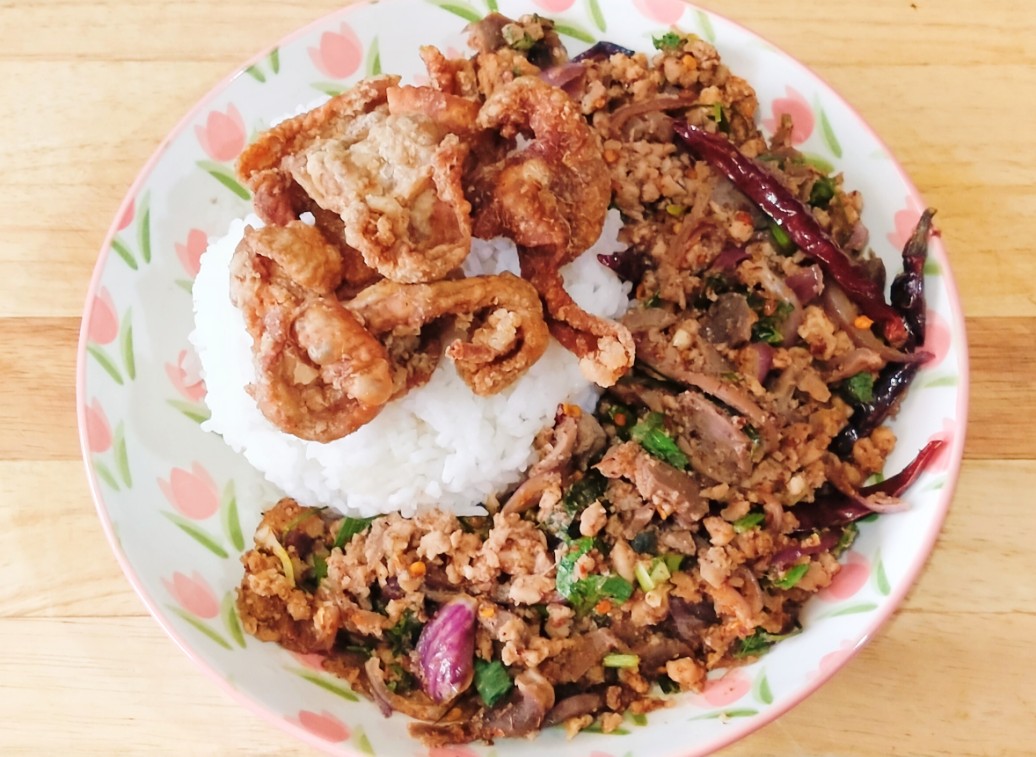 ข้าวลาบไก่ + แคบไก่ 🍛🐥🍀