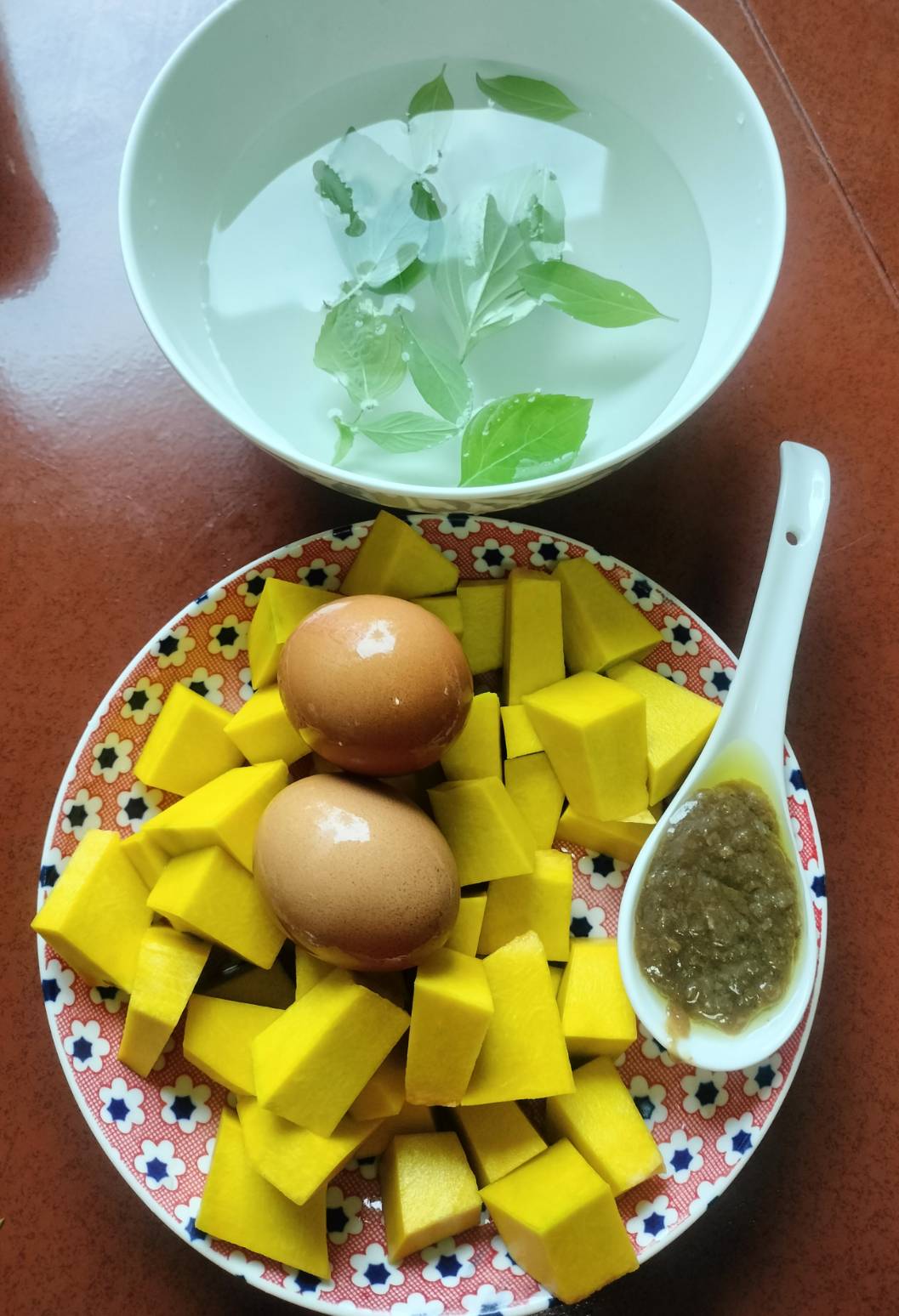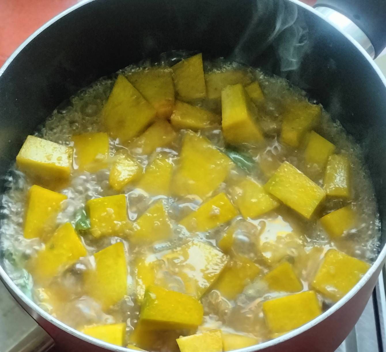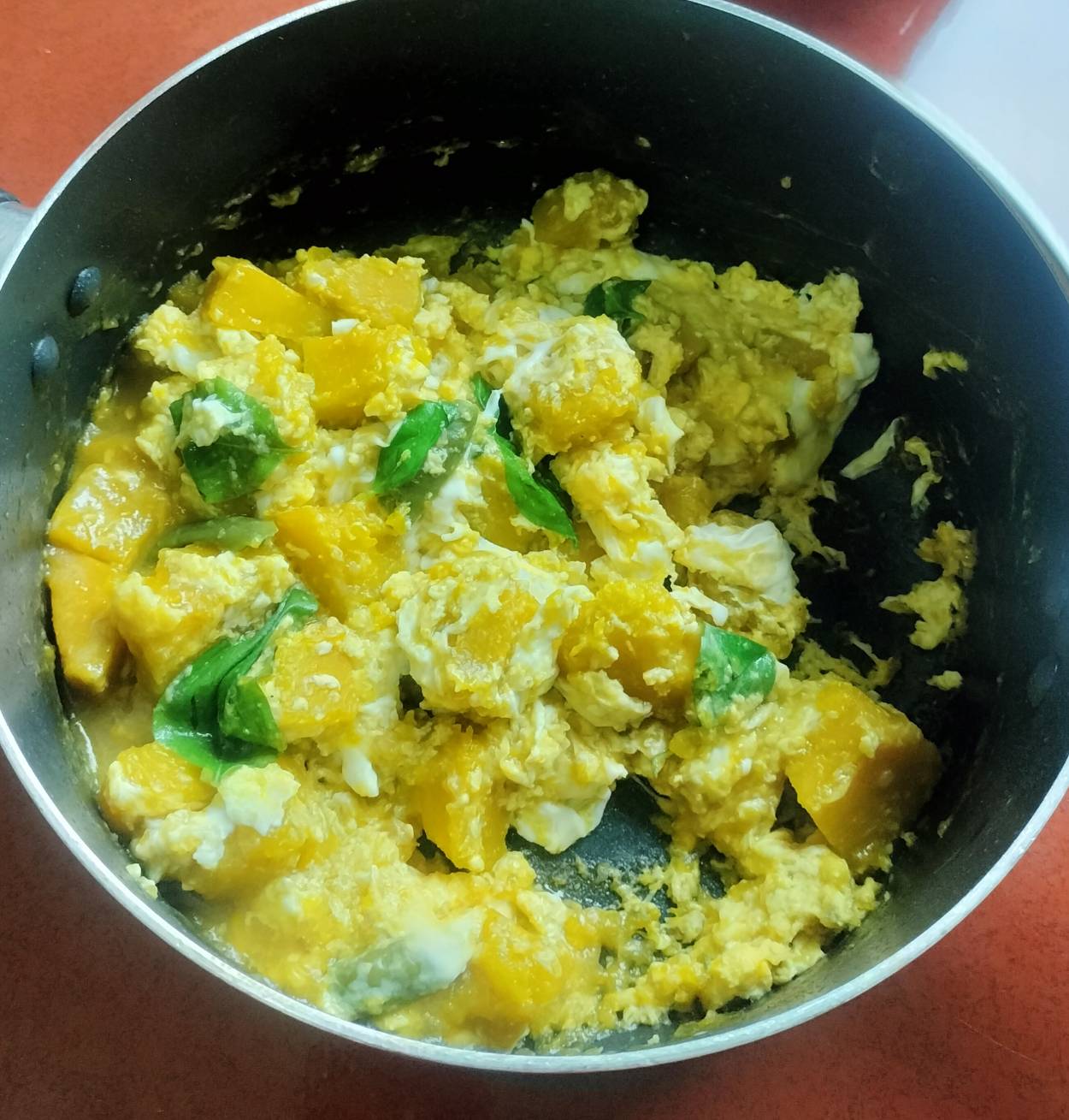 เราจะให้ฟักทองสุกนุ่มแล้วค่อยใส่ไข่