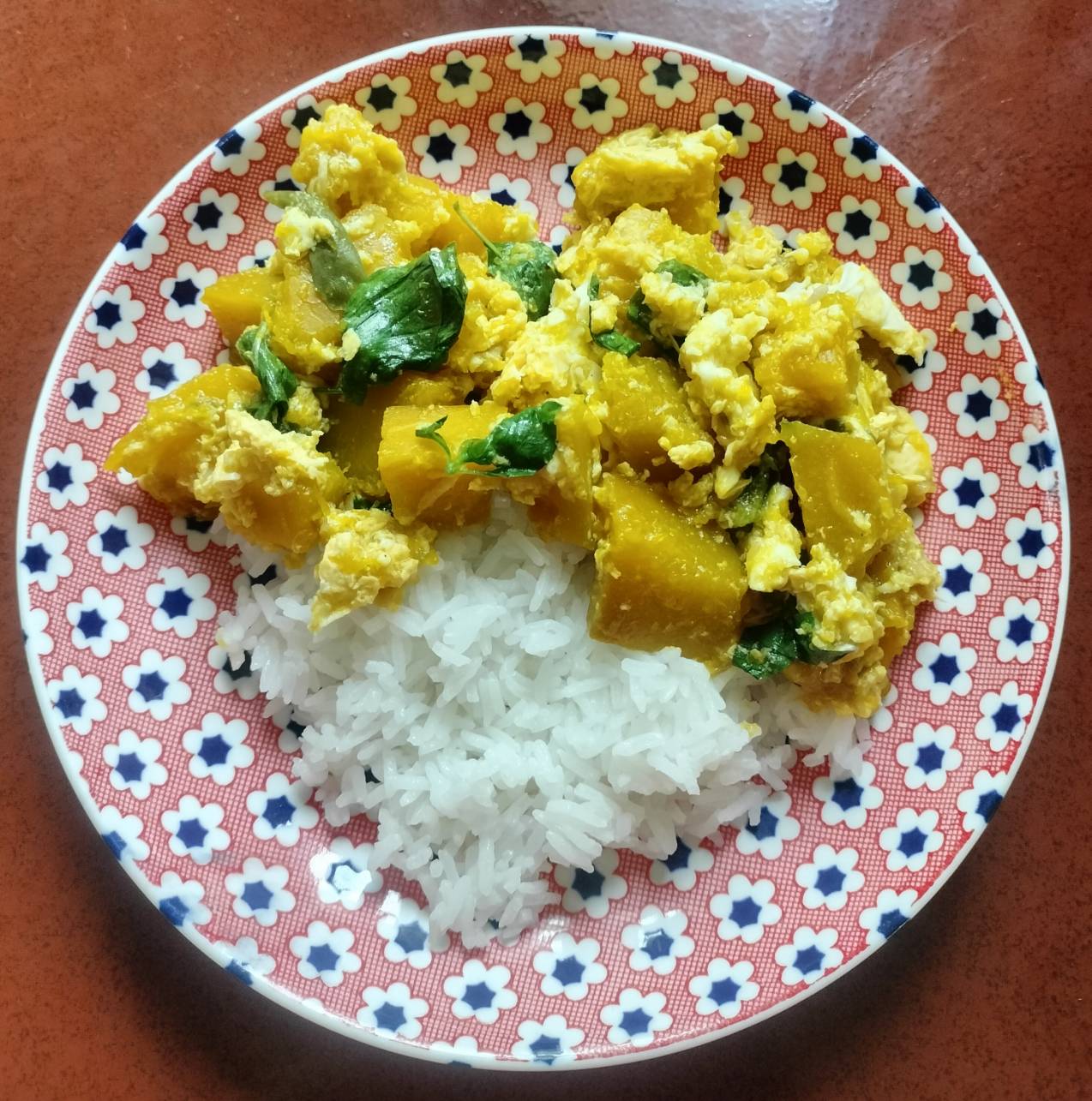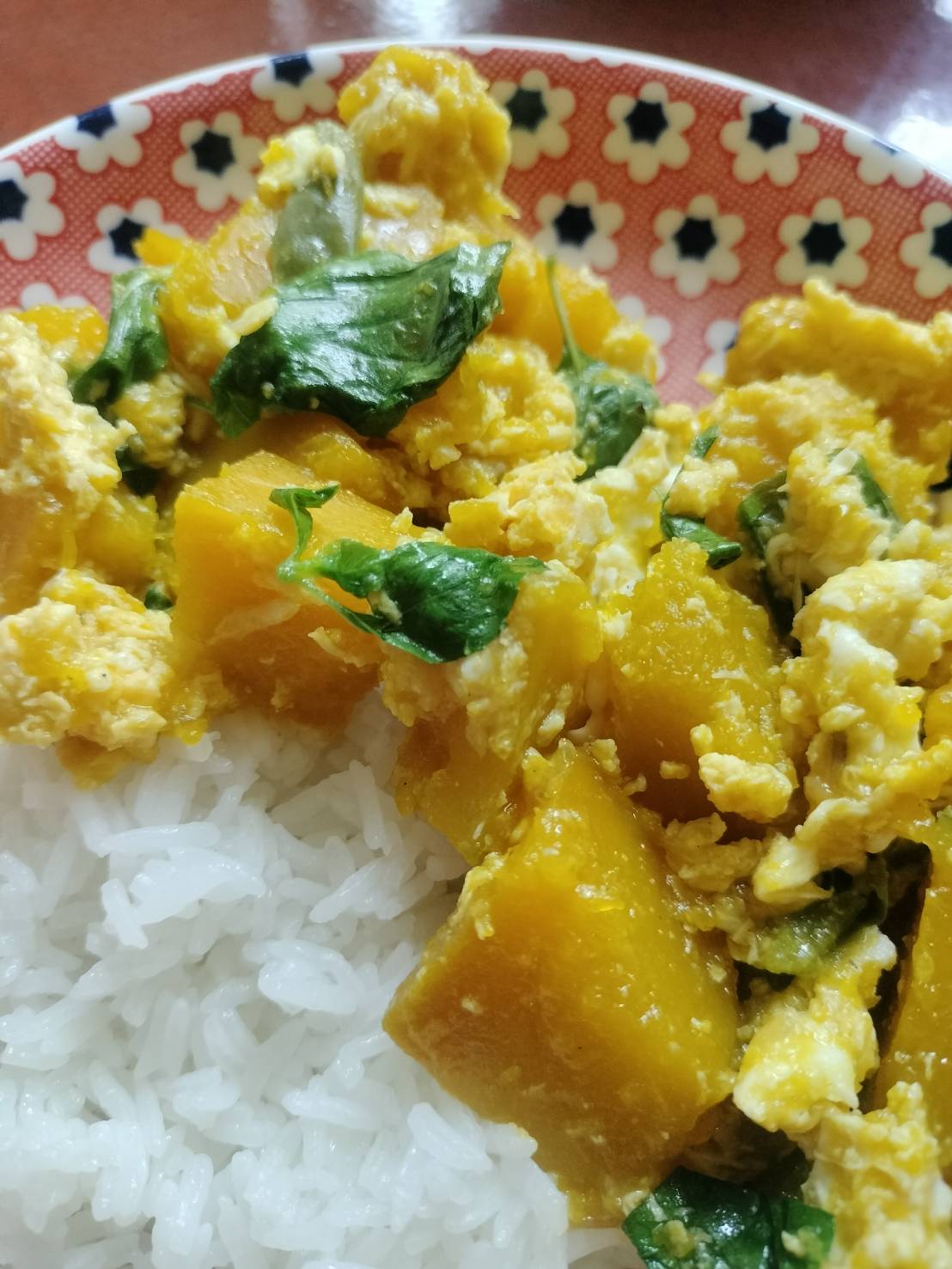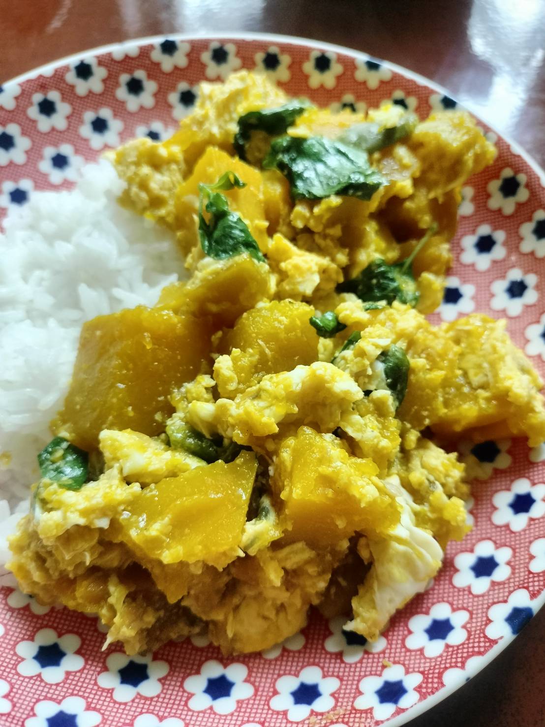 ผัดฟักทองร้อนๆ ตักใส่จานข้าว