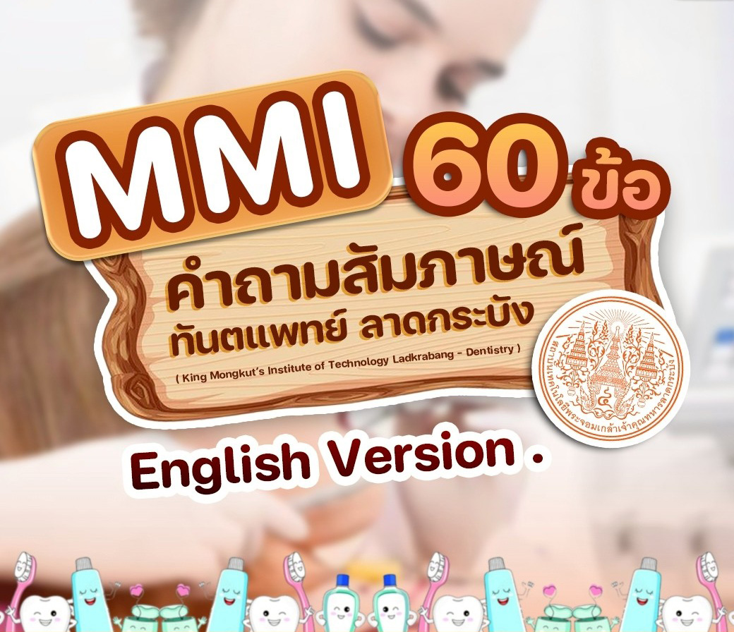 ไม่ต้องกังวล เรารวบรวม 60 คำถาม MMI (English Version) ที่ออกแบบตามแนวข้อสอบจริง สำหรับผู้สมัครคณะทันตแพทยศาสตร์ สถาบันเทคโนโลยีพระจอมเกล้าเจ้าคุณทหารลาดกระบังโดยเฉพาะ