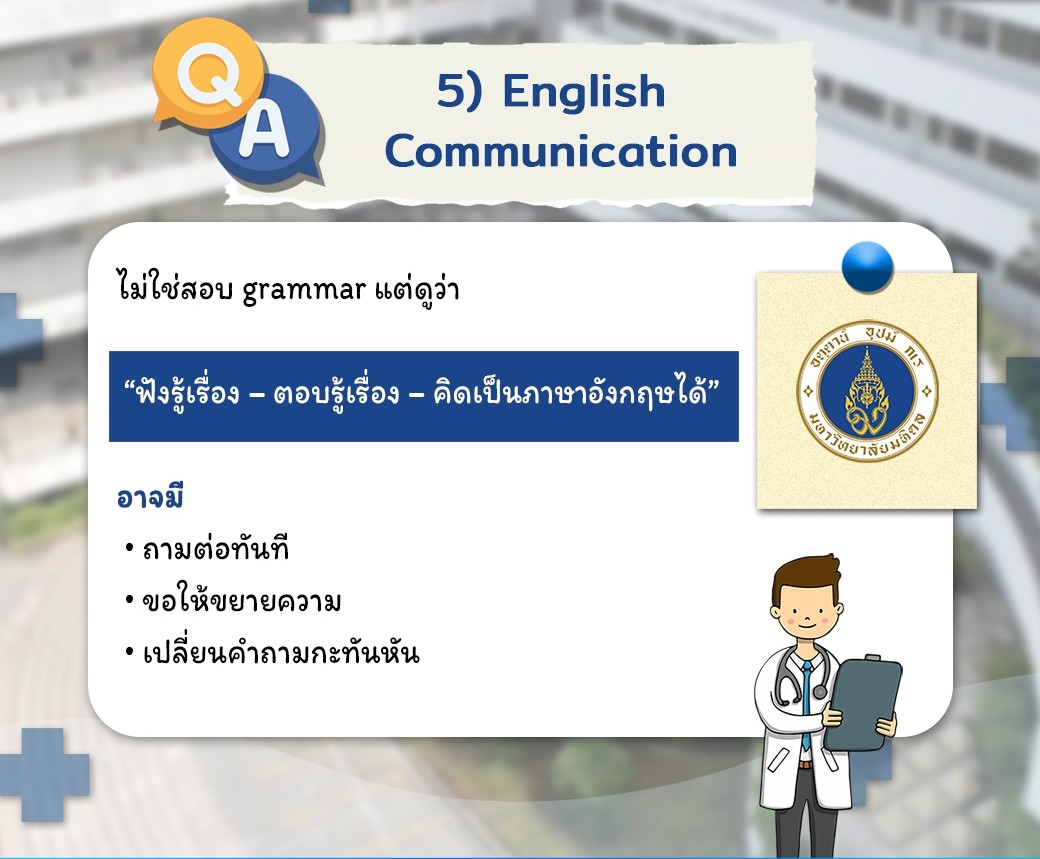 5. English Communication (ไม่ใช่การสอบ Grammar) เขาไม่ได้ดูว่าคุณพูดถูกแกรมม่าทุกตัวเป๊ะไหม แต่เขาดูว่าคุณ