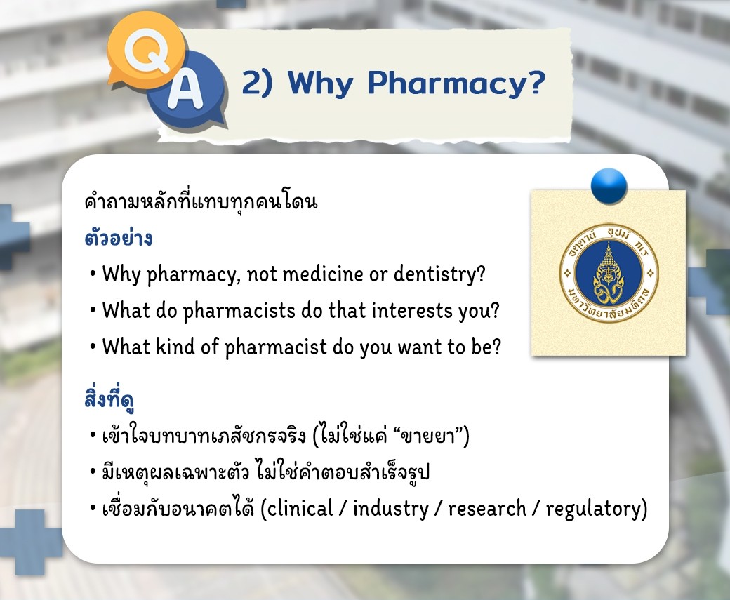 2. Why Pharmacy? (ทำไมต้องเภสัช?) ระวังคำตอบสำเร็จรูป! กรรมการจะถามว่า