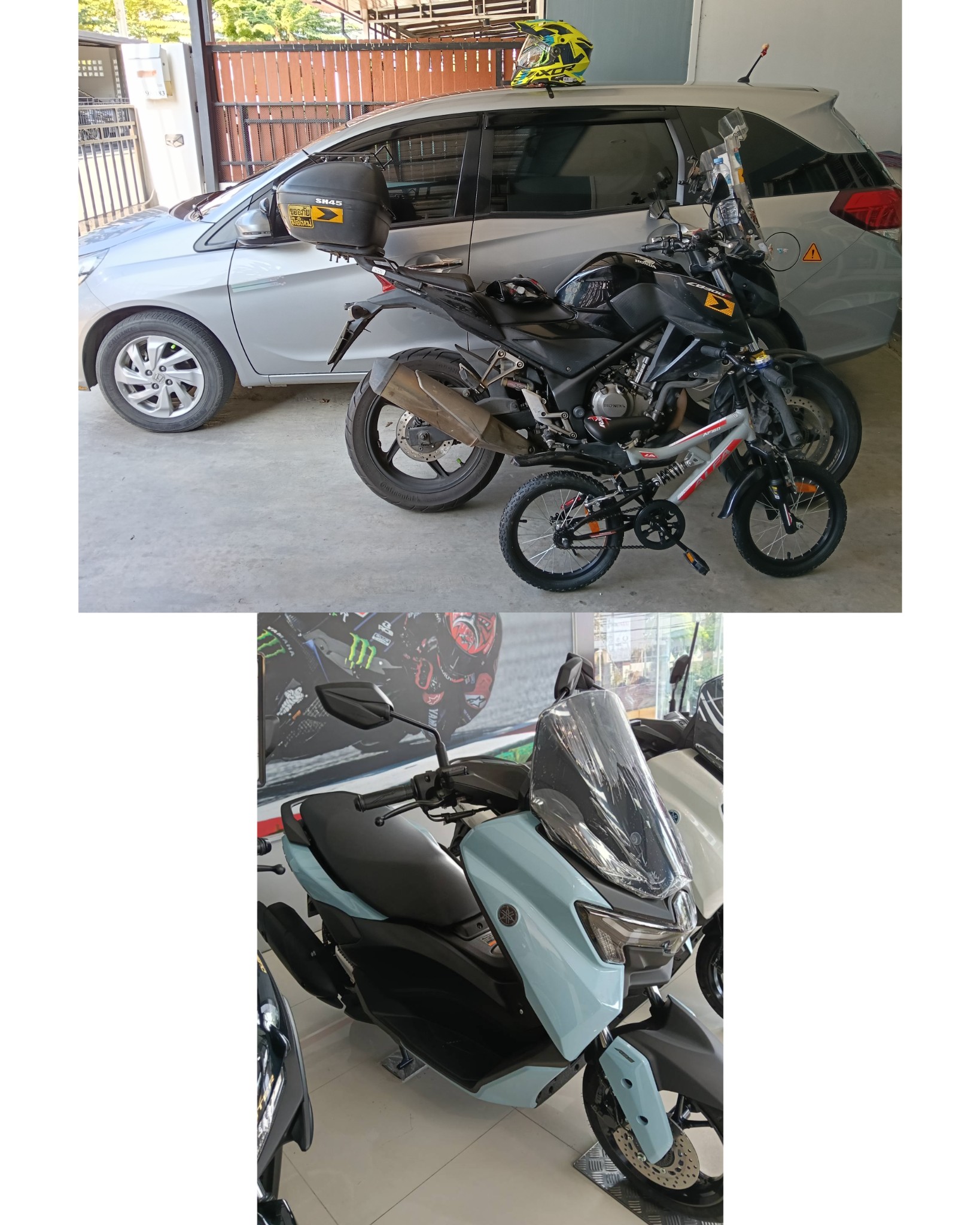 ด้วย คันปัจจุบัน cb300f. หน้าไมล์รวมปัจจุบัน 140,000 นิดๆ แล้วต้องคอยใช้ขี่ส่งลูกไปโรงเรียนและไปกลับทำงานพร้อมกับสัมภาระ เลยมองหาและทำการจอง nmax standard ที่มี ABS ให้หน้าหลัง และจะติดแร็คท้ายกับถาดรอง ให้ใช้งานกับกล่อง shad SH 45 CB300F คันเก่าสลับกัน