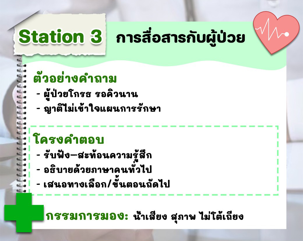 • Station 3 ทักษะการสื่อสารกับผู้ป่วยและผู้อื่น