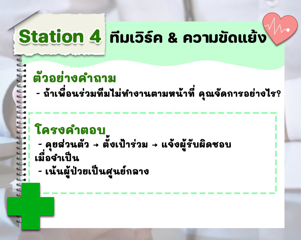 • Station 4 การทำงานเป็นทีมและการจัดการความขัดแย้ง