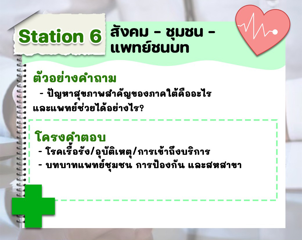 • Station 6 บทบาทแพทย์กับสังคม ชุมชน และแพทย์ชนบท