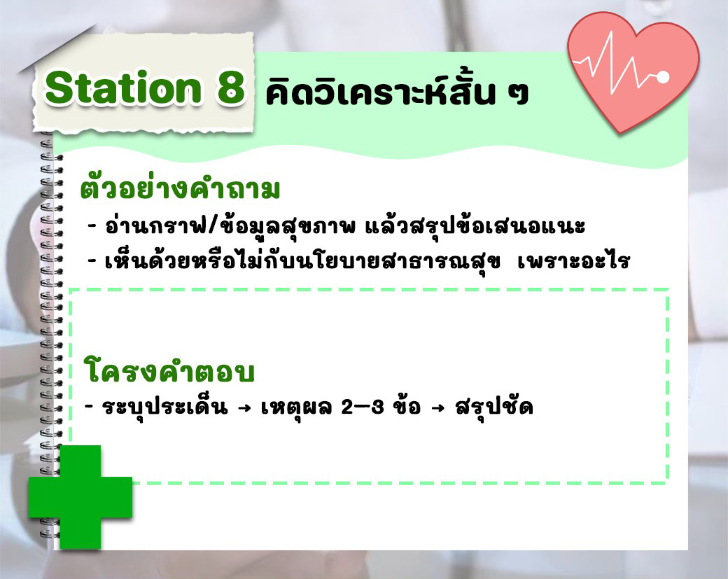 • Station 8 การคิดวิเคราะห์จากข้อมูลและสถานการณ์ที่กำหนด
