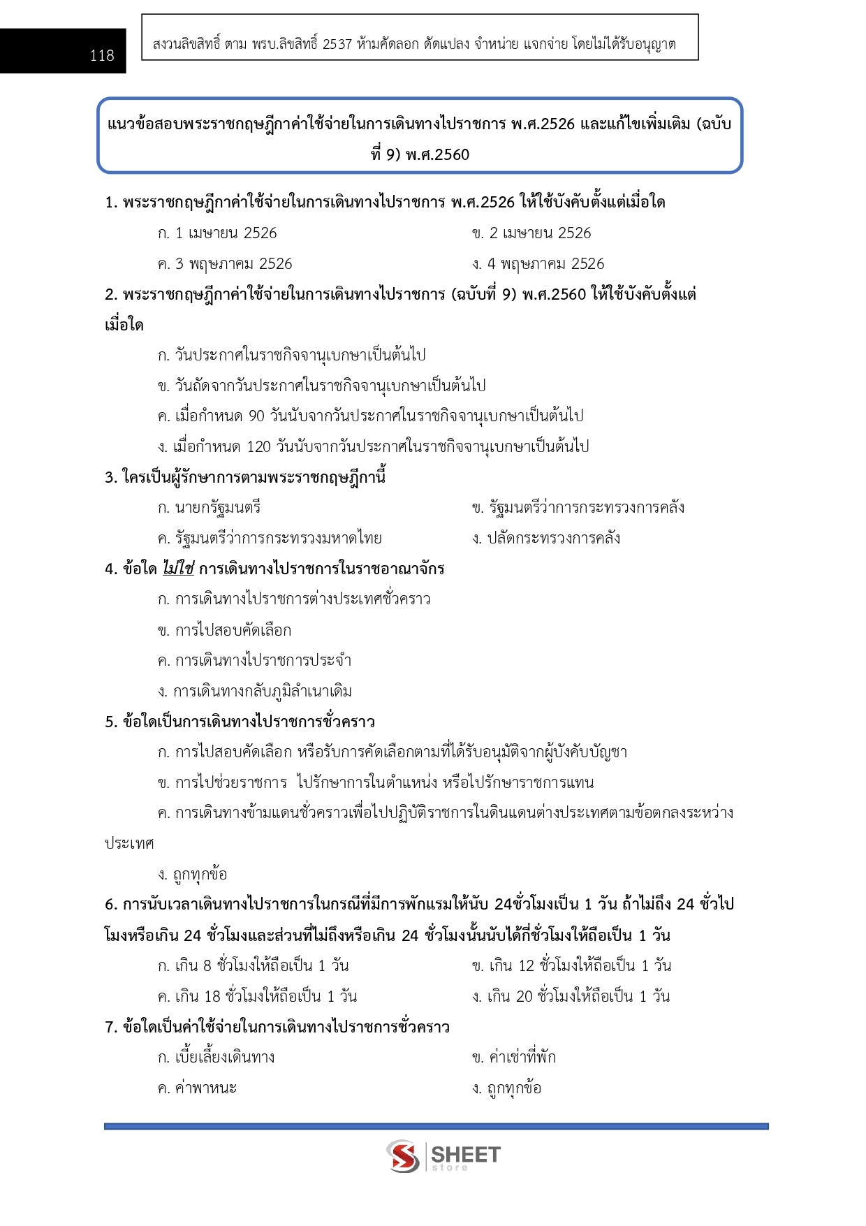 – แนวข้อสอบพระราชกฤษฎีกาค่าใช้จ่ายในการเดินทางไปราชการ พ.ศ. 2526 และแก้ไขเพิ่มเติม (ฉบับที่ 9) พ.ศ. 2560