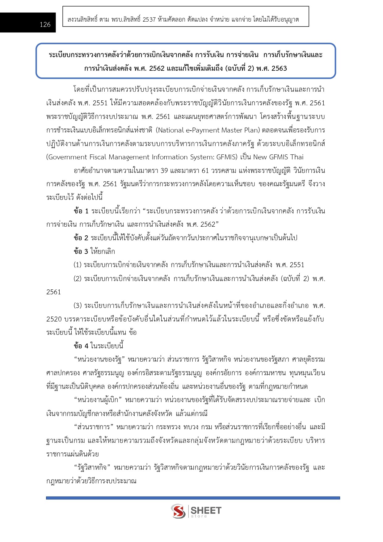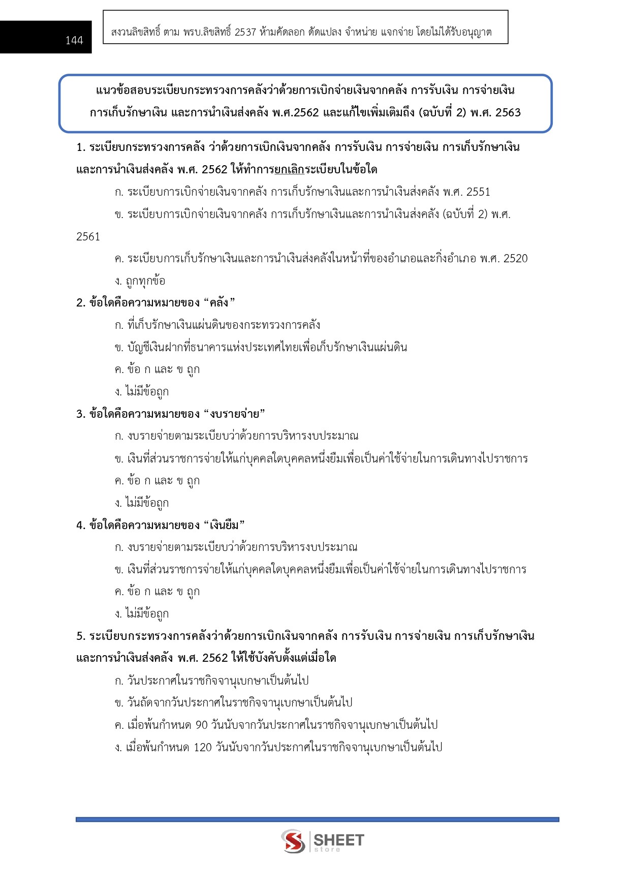 – แนวข้อสอบระเบียบกระทรวงการคลังว่าด้วยการเบิกเงินจากคลัง การรับเงิน การจ่ายเงิน การเก็บรักษาเงินและการนำเงินส่งคลัง พ.ศ. 2562 และแก้ไขเพิ่มเติมถึง (ฉบับที่ 2) พ.ศ. 2563