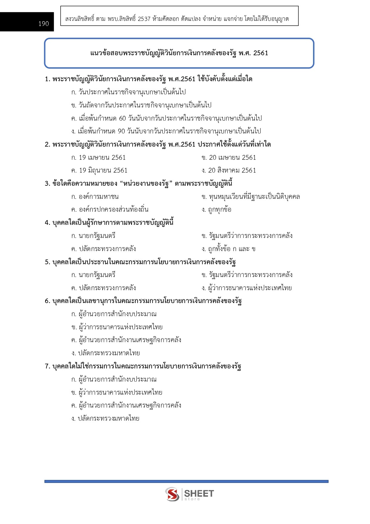 – แนวข้อสอบพระราชบัญญัติวิธีการงบประมาณ พ.ศ. 2561