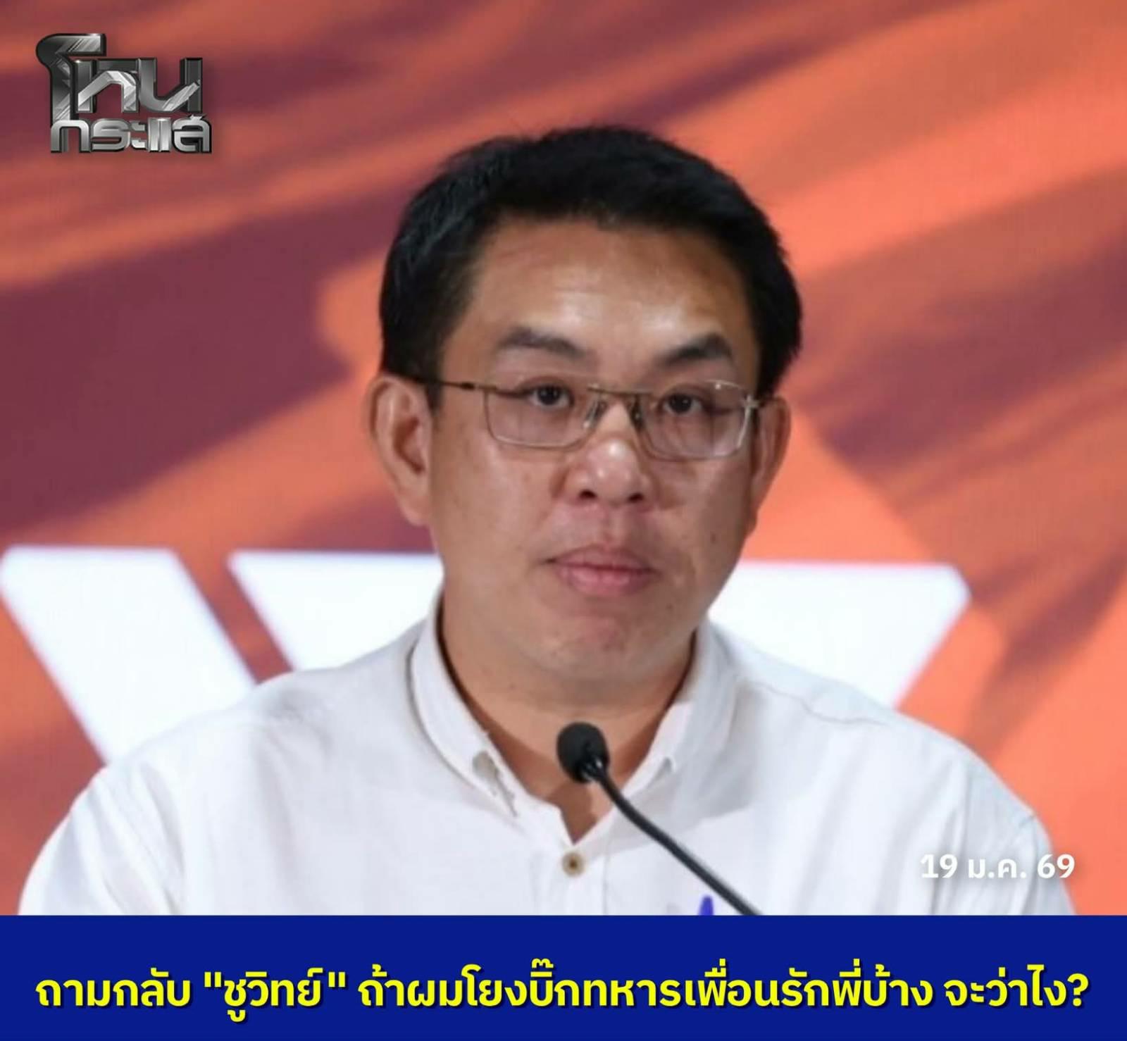 ทำให้ตนเองตั้งคำถามกับท่าทีของคุณชูวิทย์ในระยะหลัง พี่พยายามโจมตีพรรคประชาชนเป็นเพราะอะไร เกี่ยวข้องกับนายทหารคนหนึ่งที่เป็นเพื่อนรักของคุณชูวิทย์ ที่มีภาพถ่ายกอดคอสนิทสนมกับชาวต่างชาติ อดีตที่ปรึกษาคุณเซ็นที่ถูกสังคมสันนิษฐานว่ามีส่วนเกี่ยวข้องกับเครือข่ายสแกมเมอร์หรือไม่