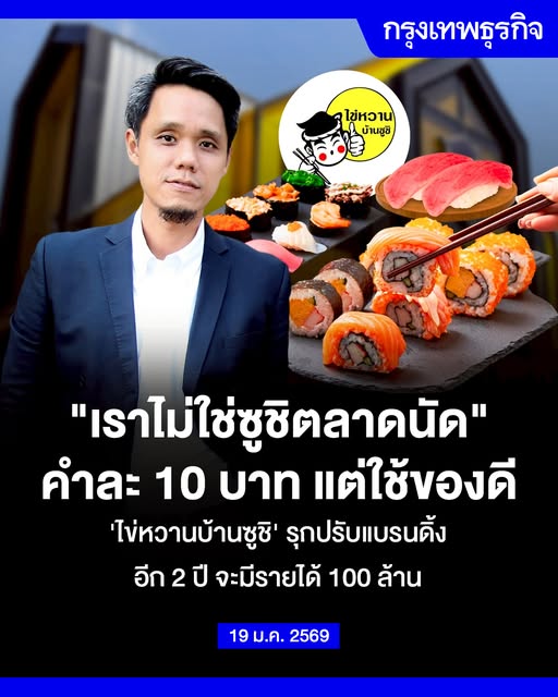 - ปีที่ผ่านมา “ไข่หวานบ้านซูชิ” มีการเปลี่ยนทีมผู้บริหารใหม่ยกชุด ดำเนินงานภายใต้ บริษัท ไข่หวานบ้านซูชิ (ประเทศไทย) จำกัด ภารกิจหลักไม่ใช่การเร่งเปิดสาขาแบบเดิม แต่เป็นการ ปรับโครงสร้างต้นทุน และรีแบรนดิ้งภาพลักษณ์