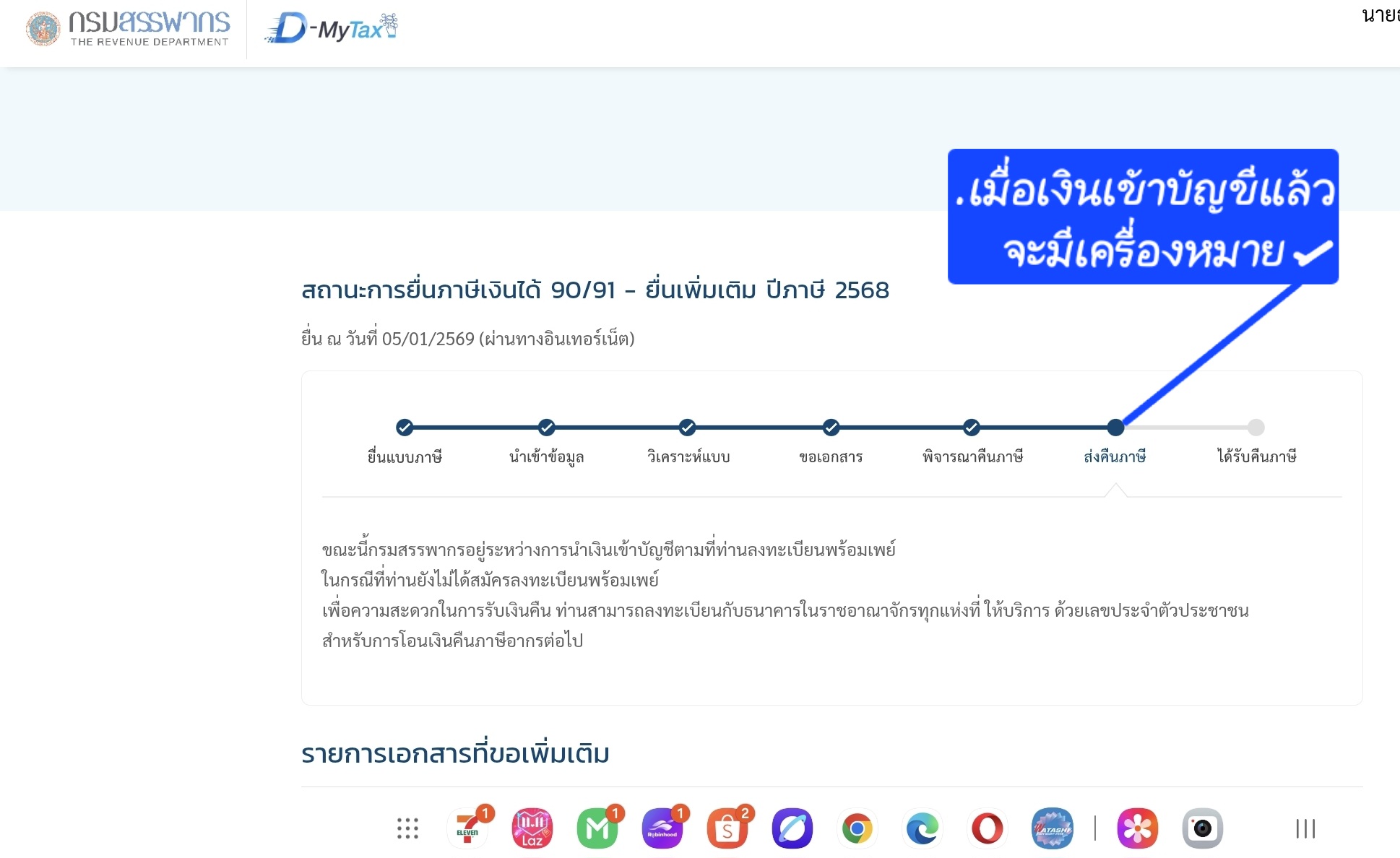 เข้าไปดูล่าสุด เวบของกรมฯ ก็ยังไม่อัพเเดท เพราะยังไม่มีติ๊กเครื่องหมายถูกตรงเมนู ส่งคืนภาษี