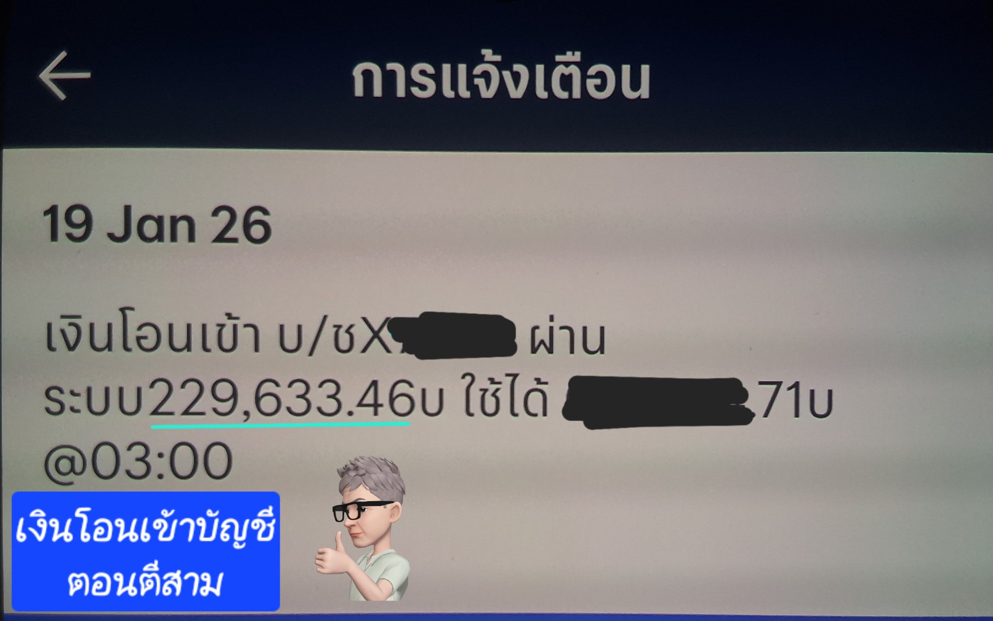 พอรู้ว่ามียอดเงินในบัญชีเพิ่มขึ้น ค่อยใส่รหัสเข้าไปดูข้อความที่แอพจะแจ้งเตือน เมื่อบัญชีมีการเคลื่อนไหว