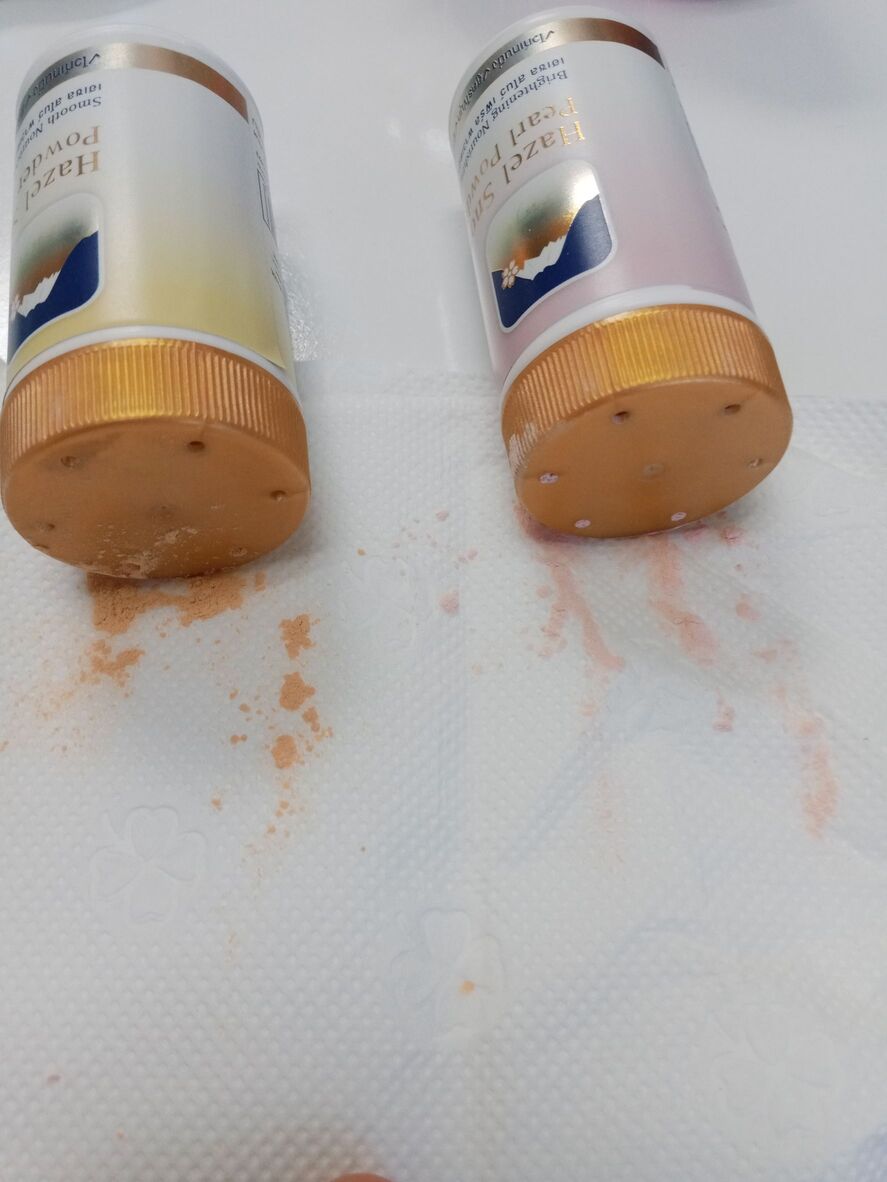 เราเทใส่กระปุกแป้งฝุ่นเลยค่ะ ไม่ฟุ้งดี