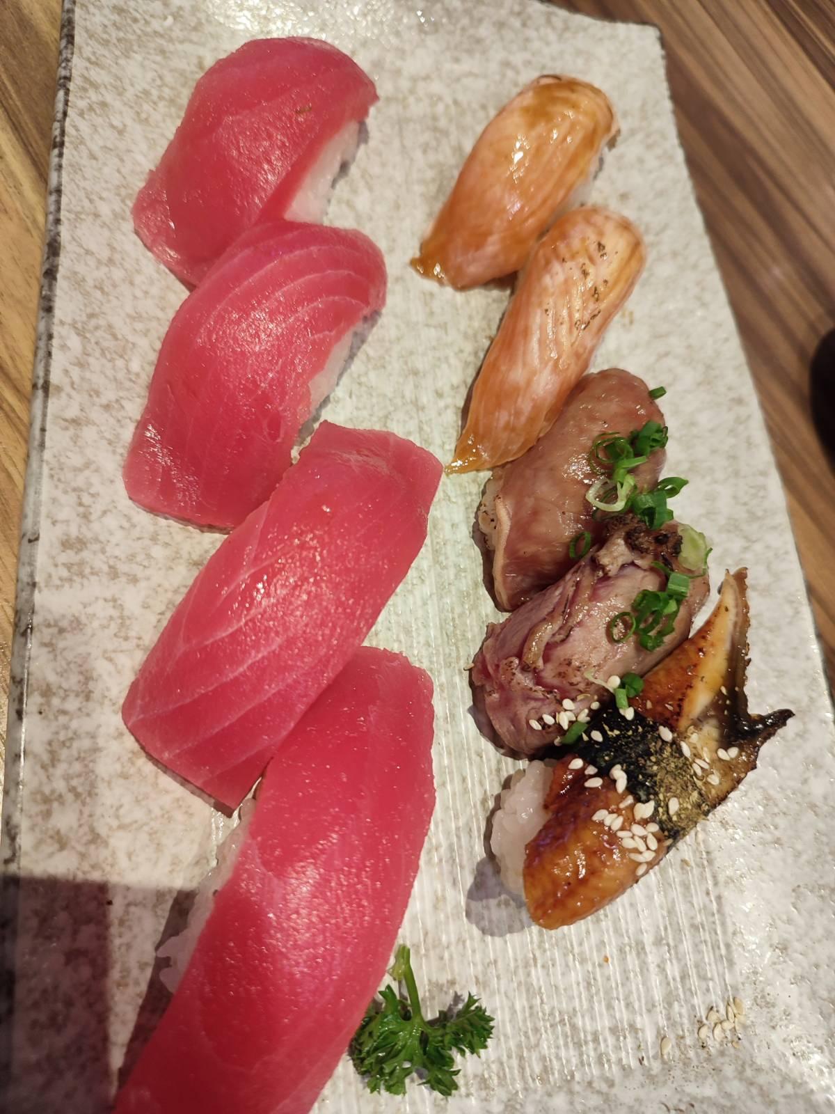 ซาชิมิ สดอร่อย ชิ้นโตมาก เต็มคำ ซูชิ ปลาชิ้นใหญ่ขึ้น ข้าวเยอะเหมือนเดิม 555 กินจนจุกครับ