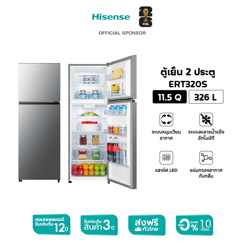 กำลังมองหาตู้เย็นที่จุของได้เยอะ ใช้งานสะดวก และไม่ต้องคอยขูดน้ำแข็งบ่อย ๆ รุ่น ตู้เย็น 2 ประตู Hisense ERT320S เป็นตัวเลือกที่ตอบโจทย์ด้วยขนาด 11.5Q (326 ลิตร) เหมาะกับบ้านหรือคอนโดที่ต้องการพื้นที่แช่ของแบบครบทั้งช่องเย็นและช่องแช่แข็ง ระบบ Total No Frost ช่วยลดปัญหาน้ำแข็งเกาะ ทำให้เก็บอาหารได้สดนานขึ้น และประหยัดเวลาดูแลตู้เย็นในชีวิตประจำวัน 🧊