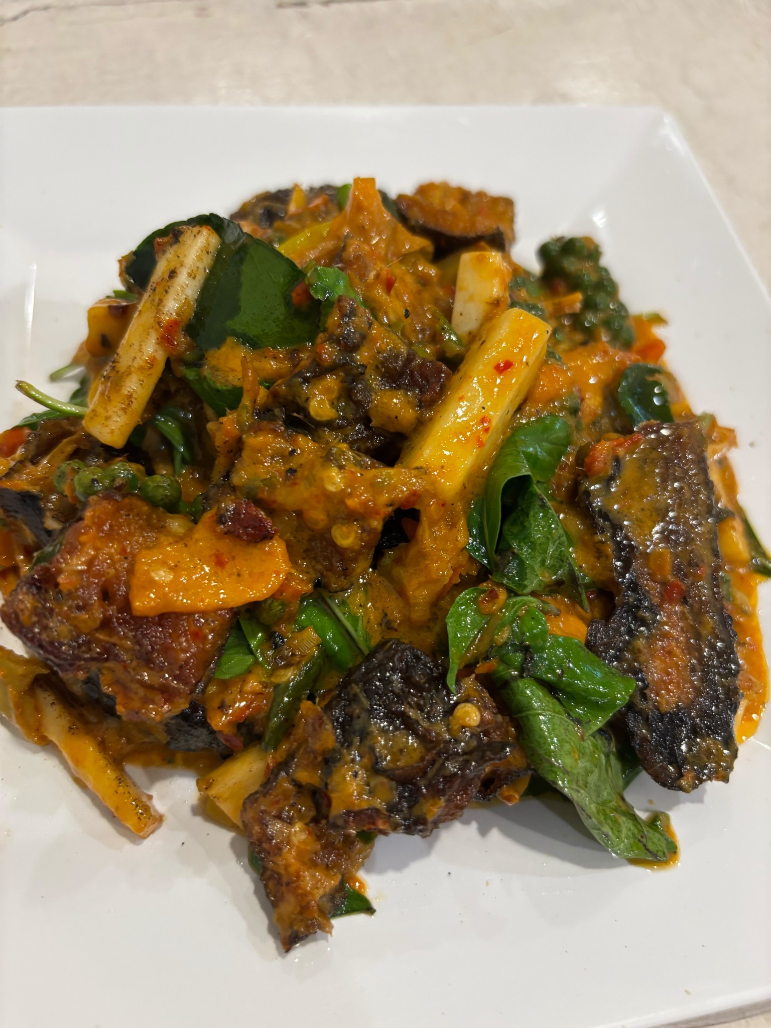 แกงป่าปลาน้ำเงิน แม้ไม่ค่อยชอบแกงป่าเท่าไหร่ แต่ก็ต้องบอกว่าอร่อยทีเดียว รสจัดจ้าน ลิ้นห้อยกันทีเดียว