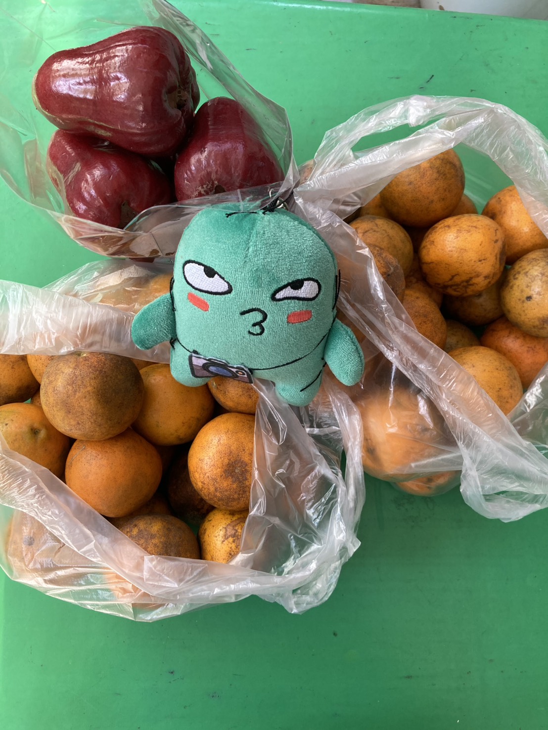 ของลูกชาย ชมพู่ก็ 25 บาท เกือบๆโล ร้านใส่ถุงไว้ให้ ห้ามเลือกค่ะ แต่ดูเหมือนส้มจะขายดีกว่า