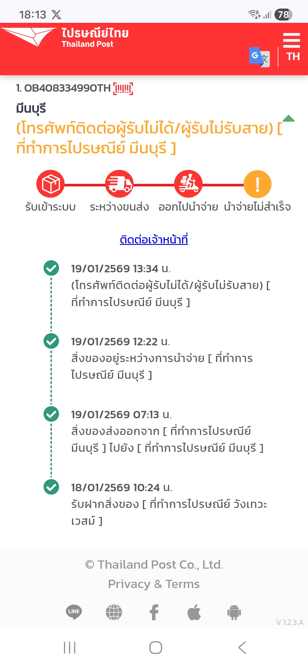 คือวันนี้เราเช็คพัสดุแล้วมันขึ้นแบบนี้ซึ่งทางขนส่งไม่ได้โทรมาหาเราเลย แต่เราติดต่อไปทาง Call Center พนักงานเขาก็ประสานงานให้ดีอยู่นะ เขาบอกว่าจะดำเนินเรื่องให้ แล้วคืองงมากมันขึ้นว่าทำจ่ายไม่สำเร็จแต่ขนส่งไม่ได้ติดต่อเราเพราะเหตุผลที่นำจ่ายไม่สำเร็จคือ ติดต่อเจ้าของเบอร์ไม่ได้แต่ไม่มีใครโทรหาเราเลยทั้งวันทำไมขนส่งถึงขึ้นว่าติดต่อไม่ได้ทั้งๆที่ไม่มีใครโทรมาอันนี้งงมาก อยากถามว่าทุกคนเคยเจอแบบนี้ไหม ถ้าใครเคยเจอแชร์ประสบการณ์ ด้วยนะ ว่าเราาควร ทำยังไงหรือถ้าทาง ขนส่งอันนี้เห็นกระทู้ก็เข้ามาตอบหน่อยนะ