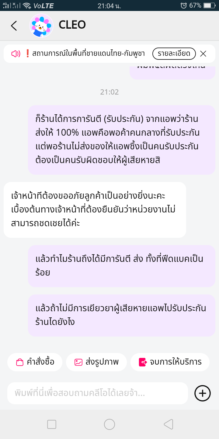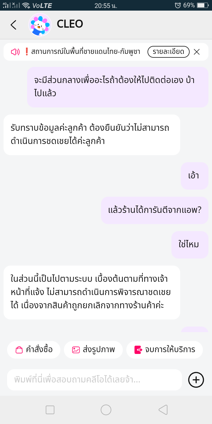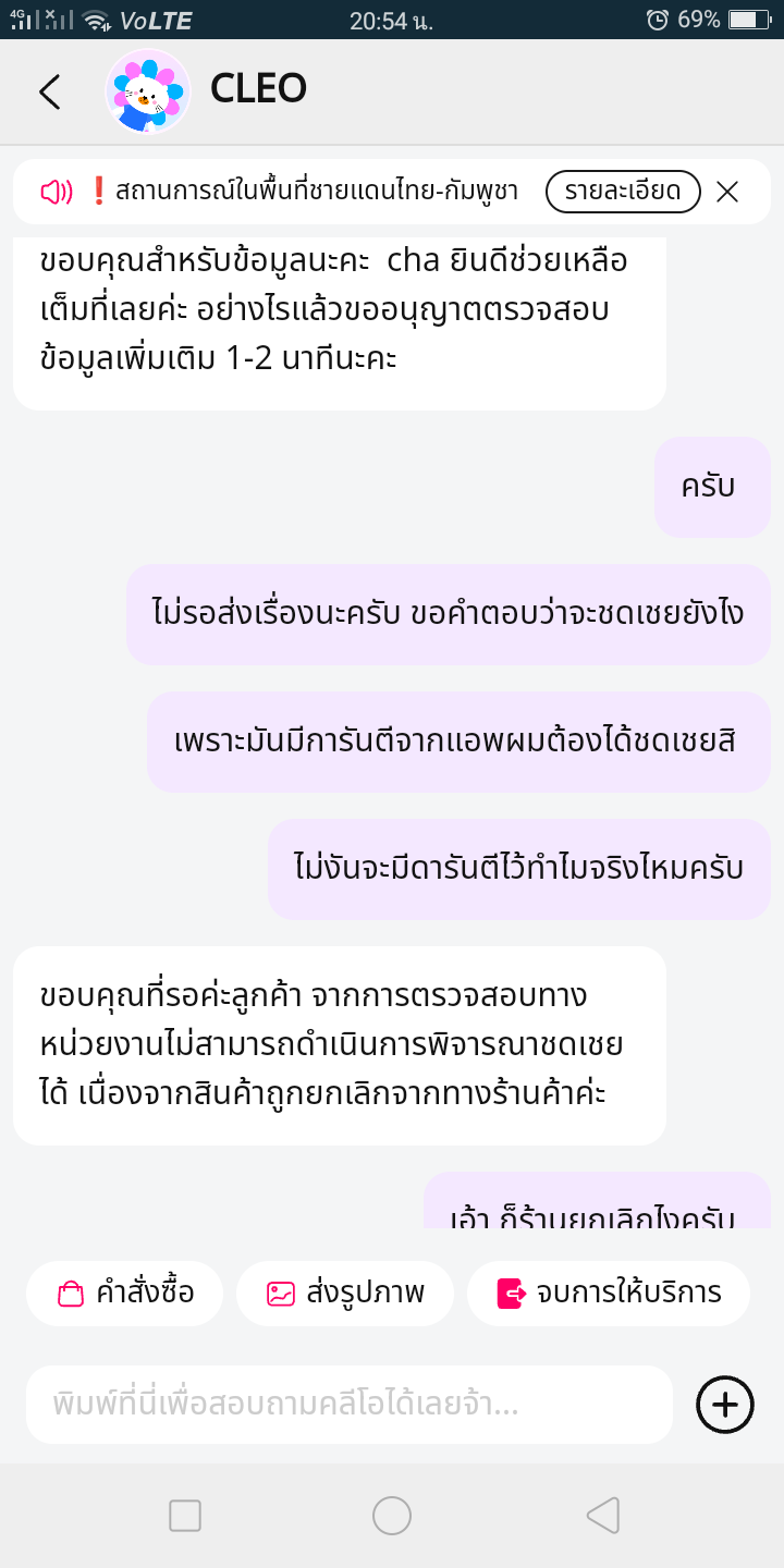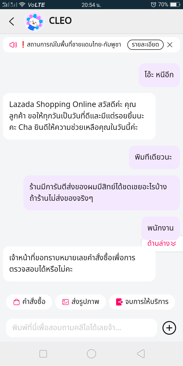 สิ่งที่ได้กลับมาคือ แอพไม่รู้แอพไม่มีมาตรการช่วยเหลือลูกค้าทั้งที่แอพเป็นคยรับประกันเอง แล้วLAZADA ให้การันตีได้ยังไง