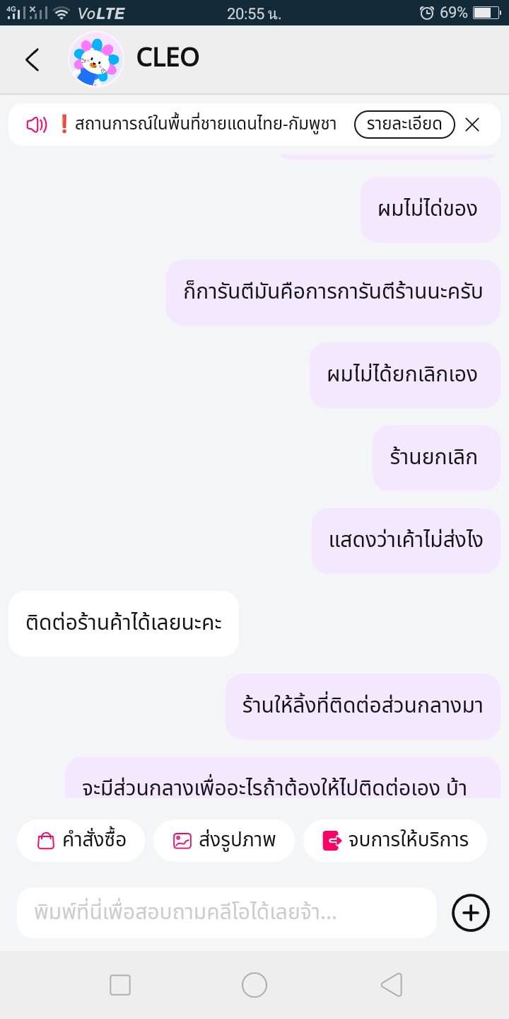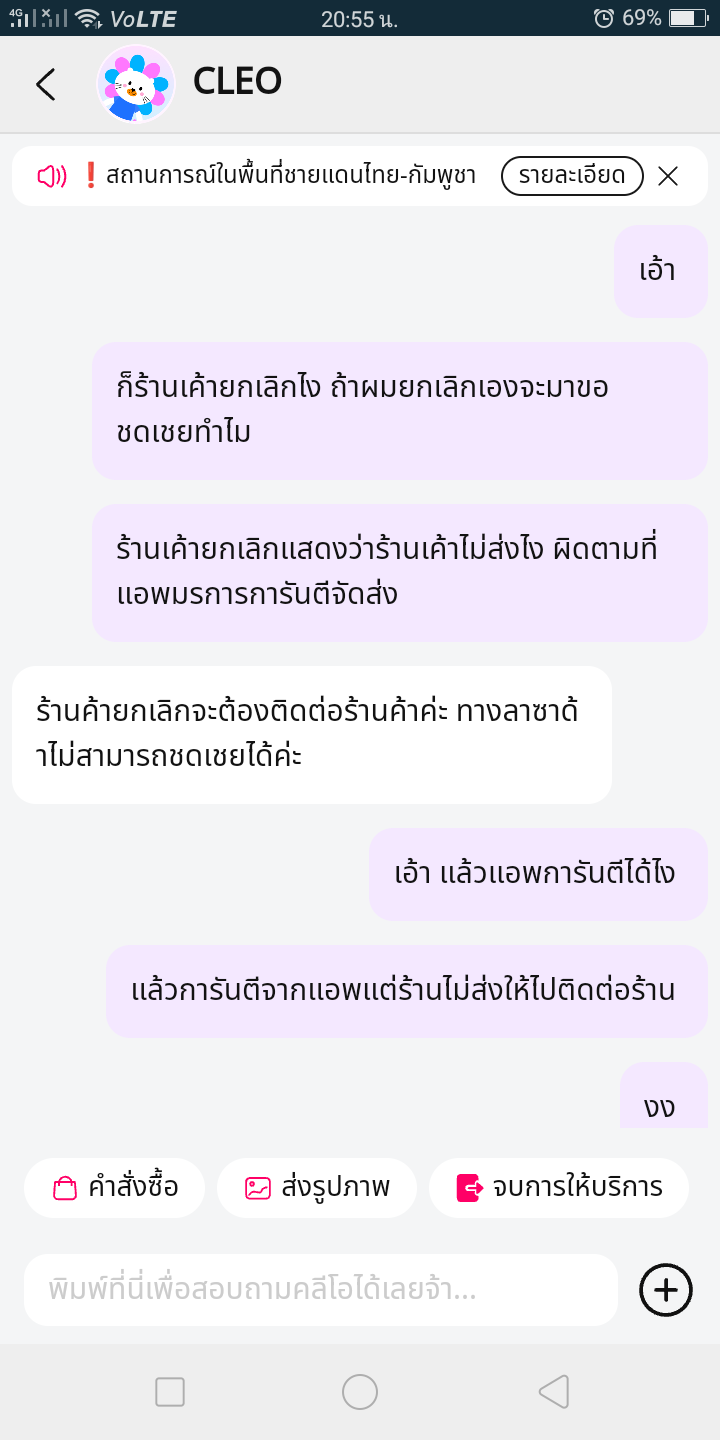 ถามพนักงานคืออ่อร้านเป็นคนขอยกเลิกช่วยอะไรไม่ได้ เอ้าก็รับประกันร้านยกเลิกมันก็คือร้านไม่ส่งของให้ผมไง ถ้าผมยกเลิกเองผมจะมาคุยกับเจ้าหน้า ที่ทำไม คือ งง