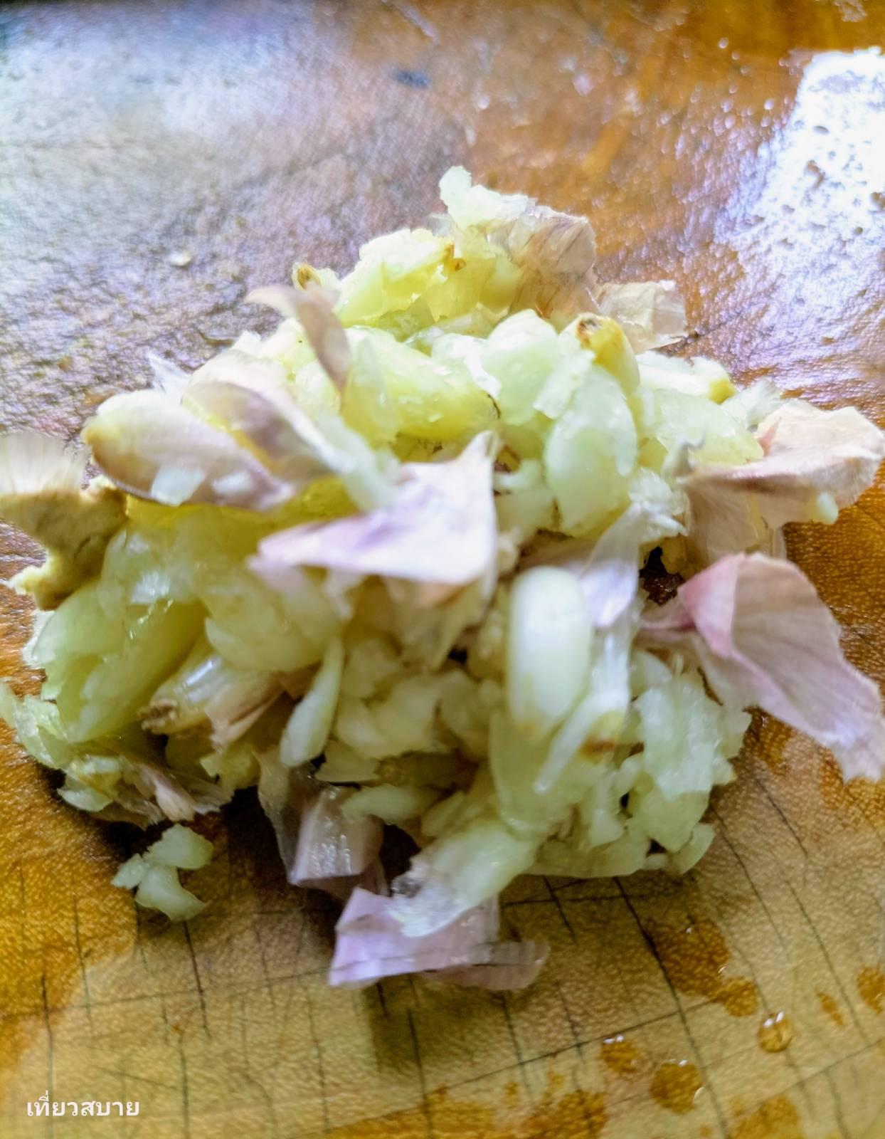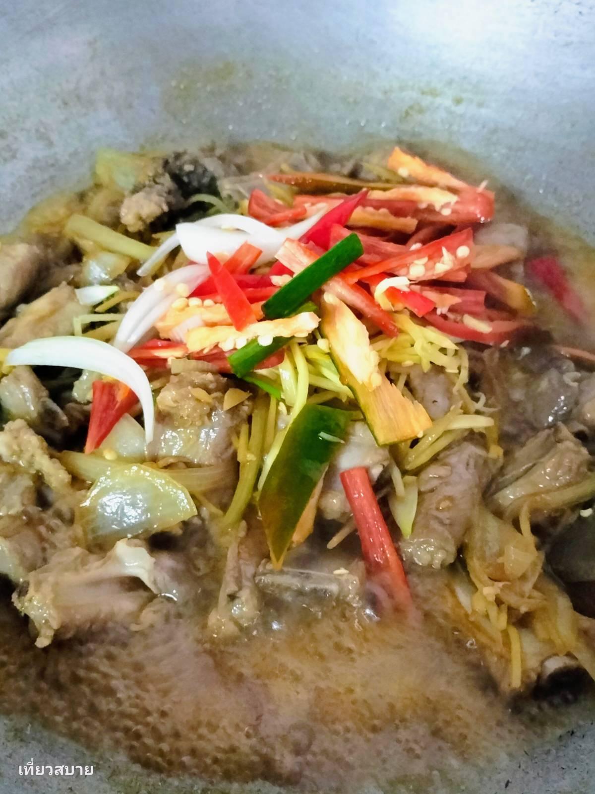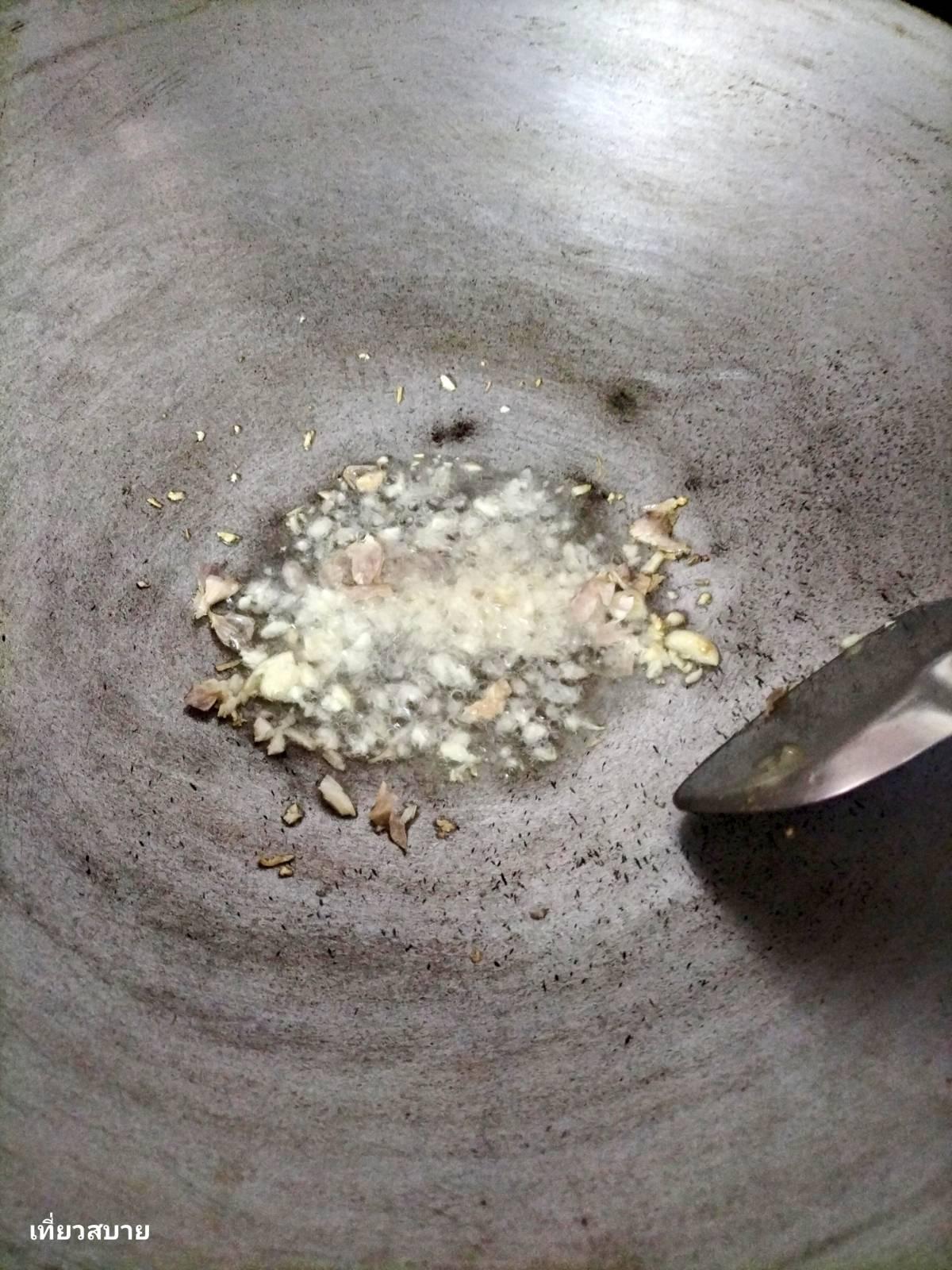 3.ไฟที่ใช้: ช่วงผัดกระเทียมกับขิงให้ใช้ไฟกลางเพื่อให้กลิ่นน้ำมันหอมระเหยออกมาเต็มที่