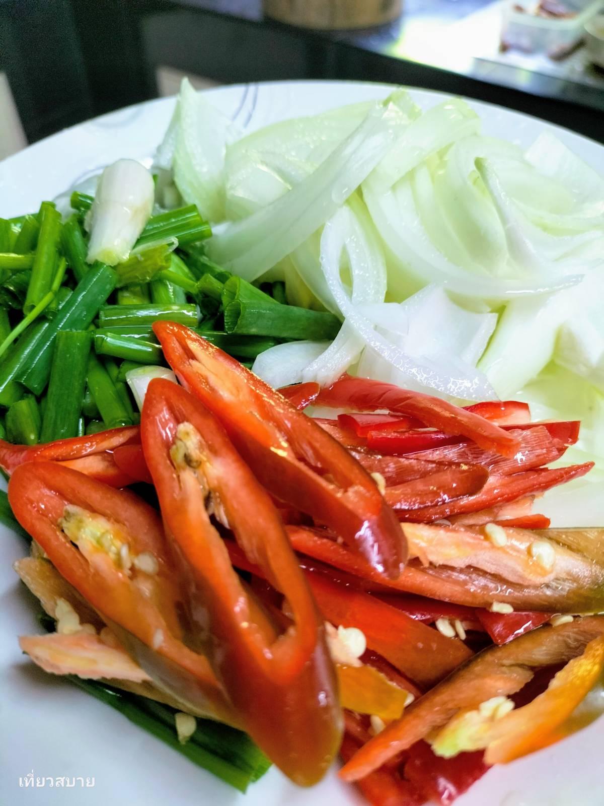 4. ต้นหอม + พริกชี้ฟ้าแดง