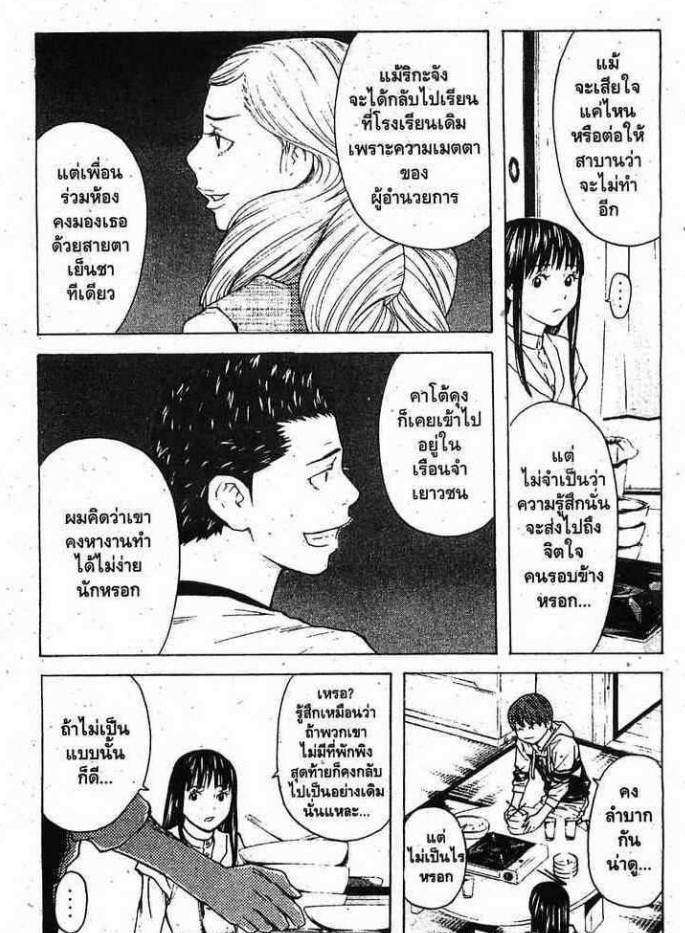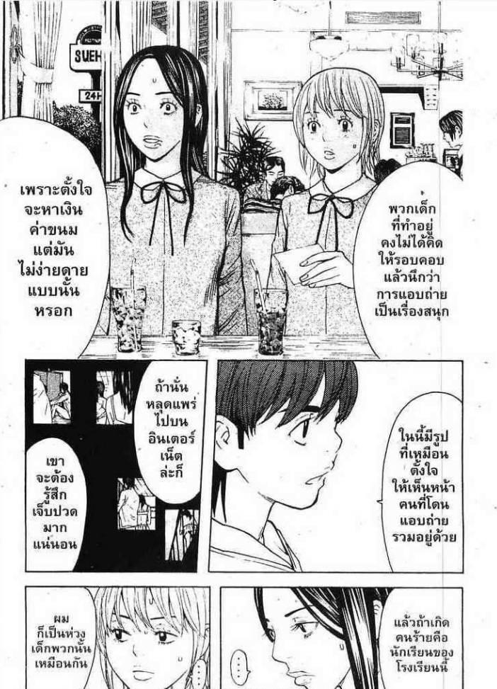 ในช่วงหลัง เราจะได้เห็นเหยื่อของอาชญากรรมบ้าง ว่าเป็นยังไง แต่คนที่ทำไม่ใช่เด็กนะ เป็นตัวร้ายเลย แบบผู้ใหญ่ที่ข่มขืนเด็กหรือพาเด็กไปขายบริการ ช่วงหลังการ์ตูนเริ่มมีสายโหดบ้างเหมือนกัน