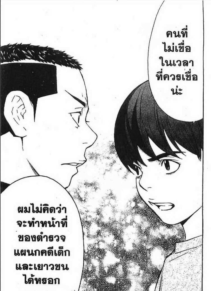 พอรู้ว่าทำผิดกฏหมายอะไรแล้ว…ไม่ได้หาหลักฐานและเข้าจับกุมนะ นั้นการ์ตูนปกติ นี่การ์ตูนอุดมคติ(บ่นยาวมากในรีวิว) พระเอกจะหาว่าเพราะอะไร ถึงทำ มีปมในชีวิตอะไรบ้าง เช่น เคยโดนรังแก,ผลการเรียนตก,บ้านมีปัญหา,อยากตาย และ อื่นๆ