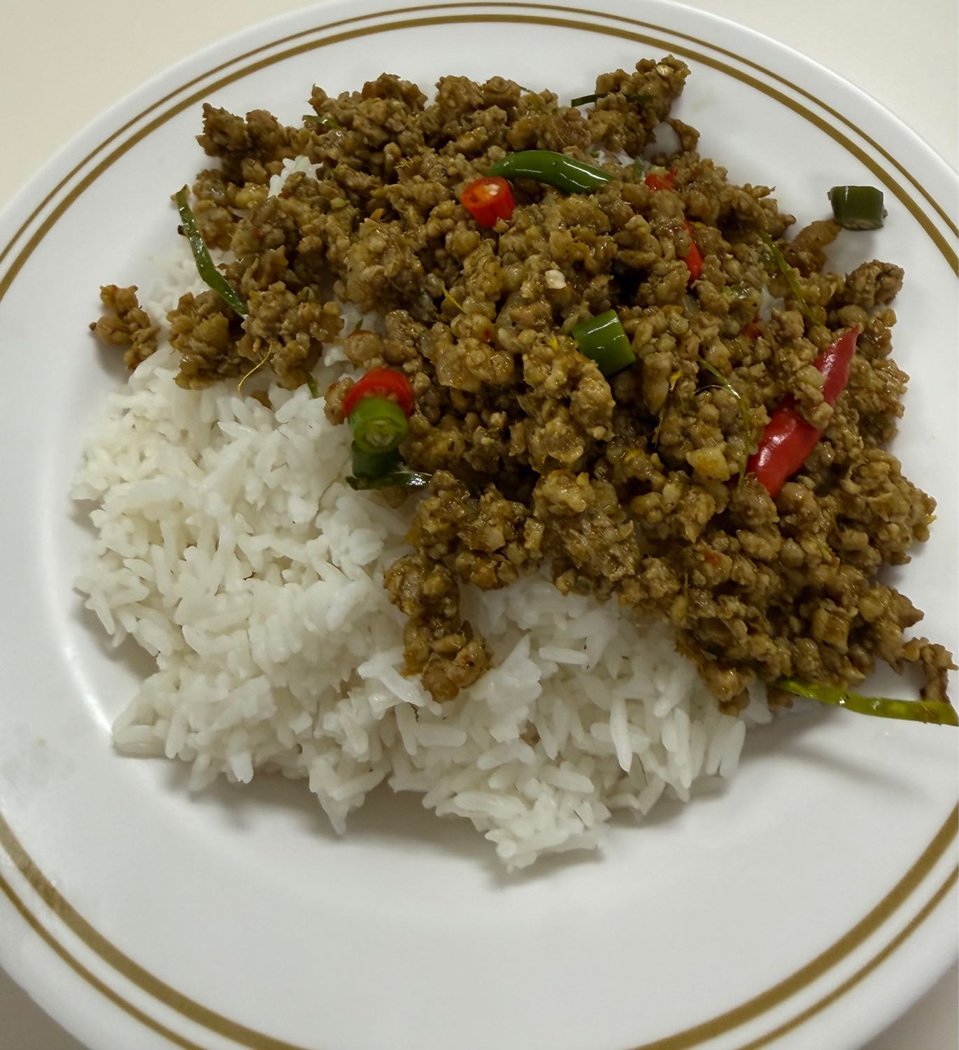- แกงจืดเต้าหู้ หมูสับ มะเขือเทศ ไข่ต้ม ต้นหอม - ผัดคั่วกลิ้ง ผงกะหรี่ หมูสับ เติมพริกสด ทานกับข้าวสวย ร้อนๆ เผ็ด ร้อนถึงใจ 😋