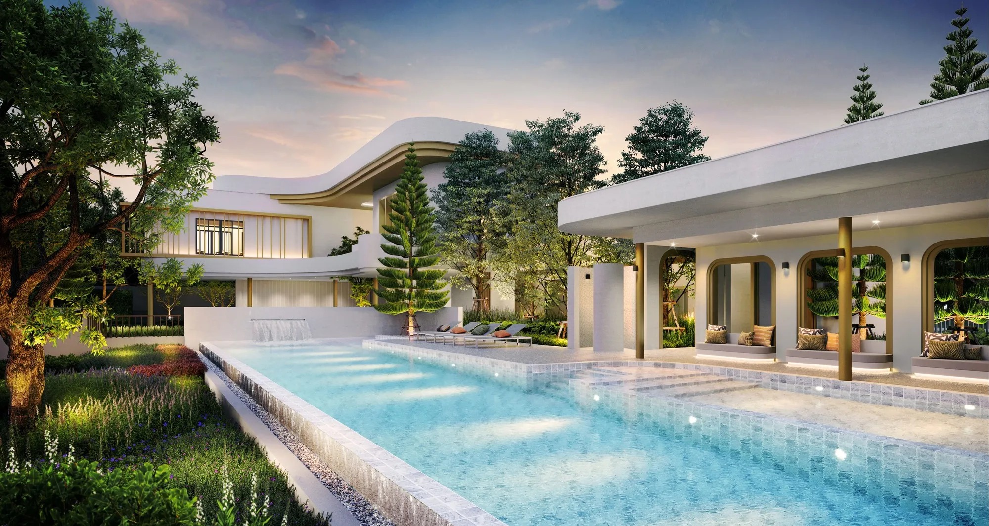 5 ห้องนอน 3 พื้นที่พักผ่อน 6 ห้องน้ำ 4 ที่จอดรถ 1 ห้องแม่บ้าน